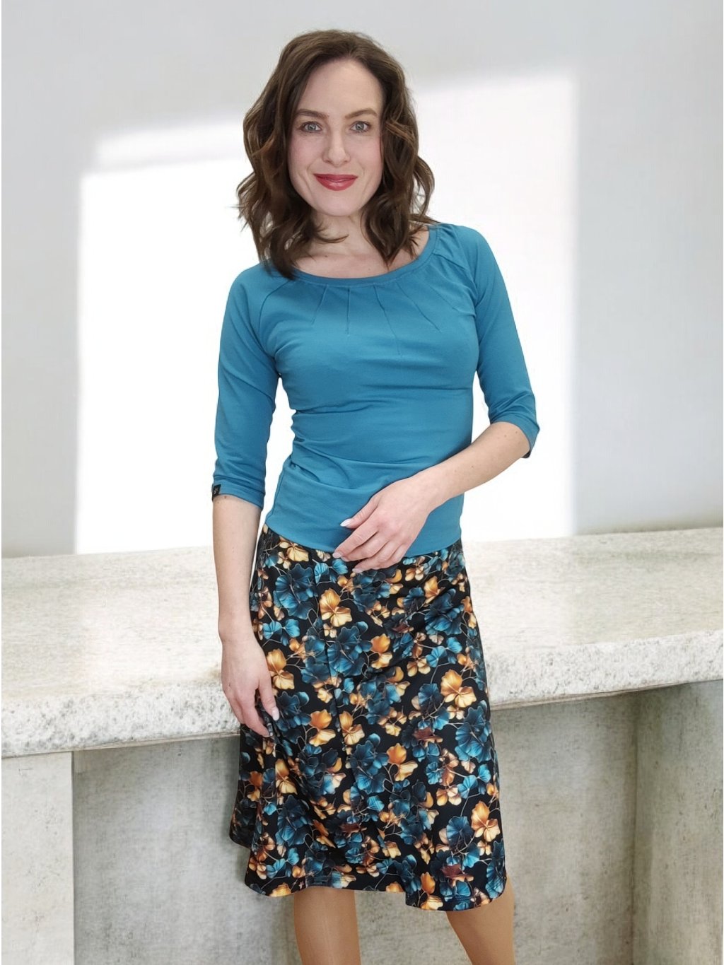 Áčková sukně ENOLA, podzim/ zima, Petrolejové a fuchsiové květy