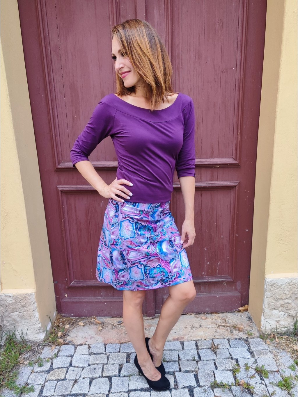 Dámská vzorovaná áčková sukně se hodí celoročně. Sukně je elegantní, slušivá a nosí se na bocích.