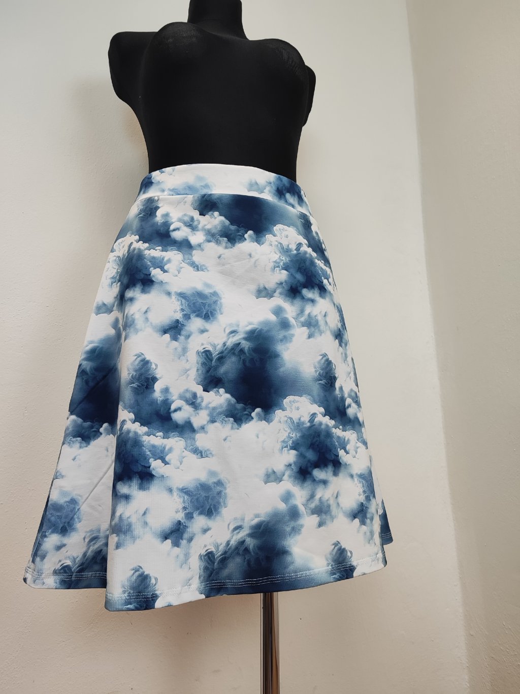 Materiál na sukni je bavlněný středně silný úplet - 95%/bavlna/ 5% elastan.