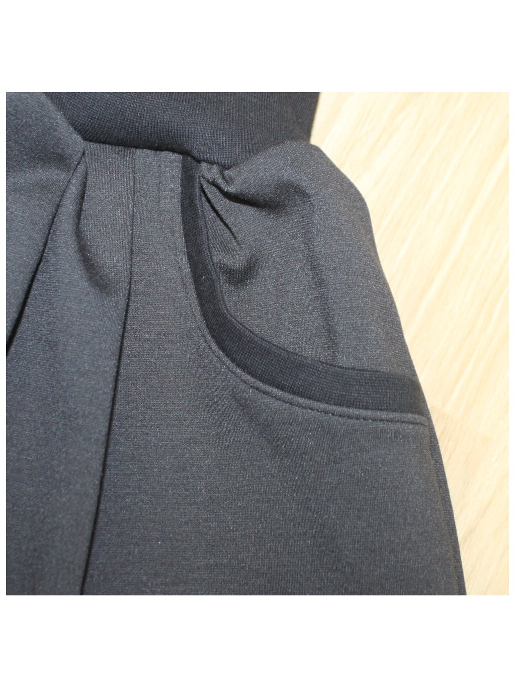 V pase je sukně zapravená do pružného úpletu, širokého 12 cm. Sukně se může nosit v pase i na bocích.Sukně má v bocích kapsy. |