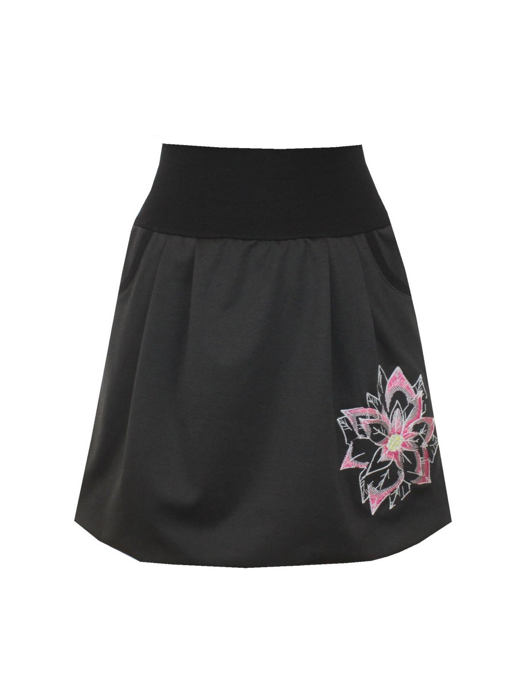Balonová sukně je vhodná celoročně, na boku je výšivka květiny.