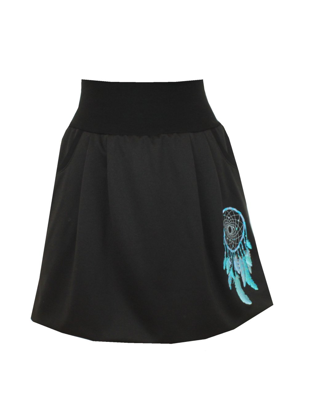 Balonová sukně je vhodná celoročně, na boku je výšivka lapače snů.