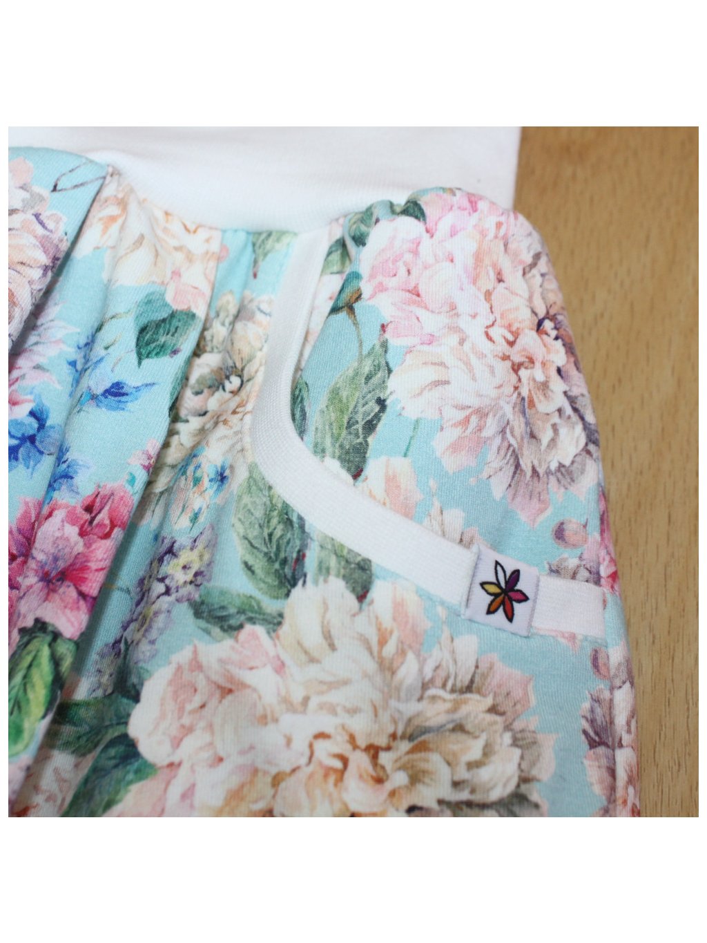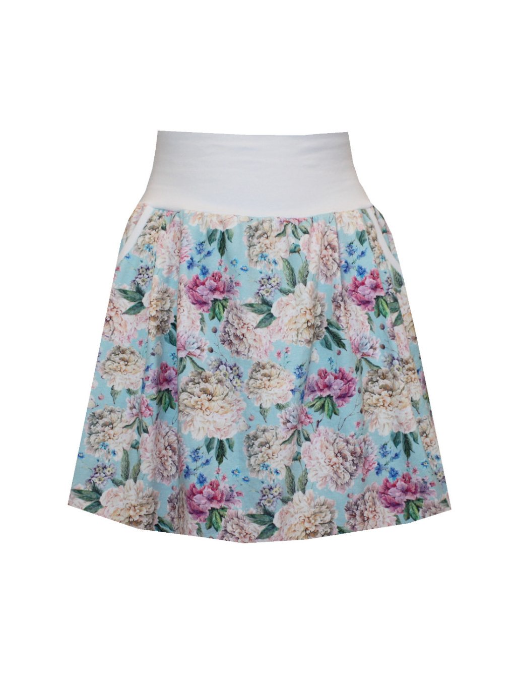 Balonová sukně KATY, kapsy, bílý pas, pivoňky