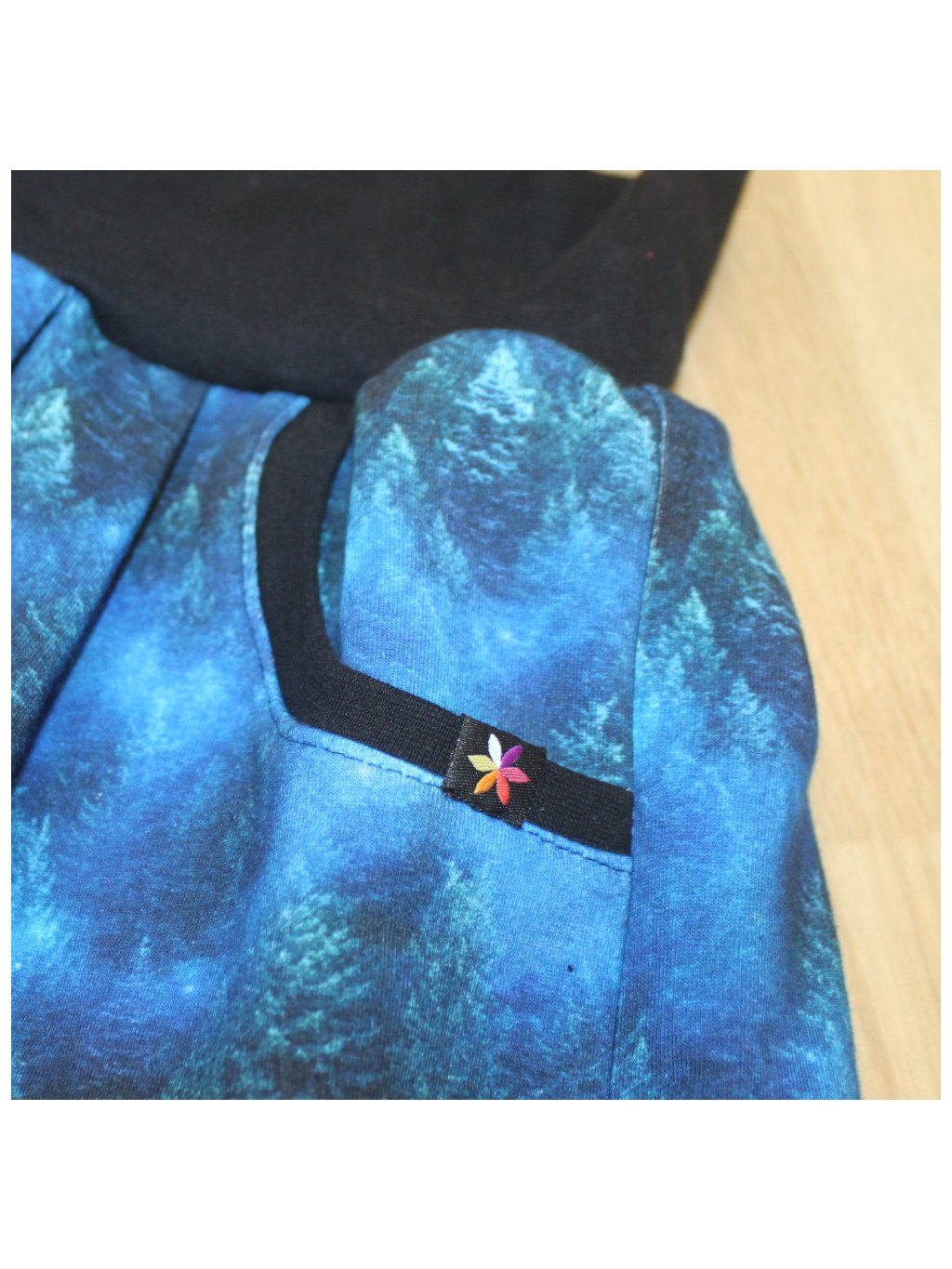 Tato balónová sukně je jako procházka mezi stromy – v jejím vzoru se zrcadlí lesní klid i jemná tajemnost. Díky mikinovině působí sukně plasticky a bohatě, ale zároveň je měkká a pohodlná. Můžete ji nosit od jara do podzimu, a díky pevnějšímu materiálu je ideální i do chladnějších dní. Balónový střih s bočními sklady vytváří krásnou ženskou siluetu, která lichotí každé postavě. Praktické kapsy přidávají na funkčnosti a přirozené ležérnosti. Pas je pružný, pohodlný a neškrtí. Délku sukně si zvolíte podle sebe, případně vám ji rády upravíme. Originální kousek z limitované kolekce, ušitý v naší české dílně s důrazem na kvalitu a styl.