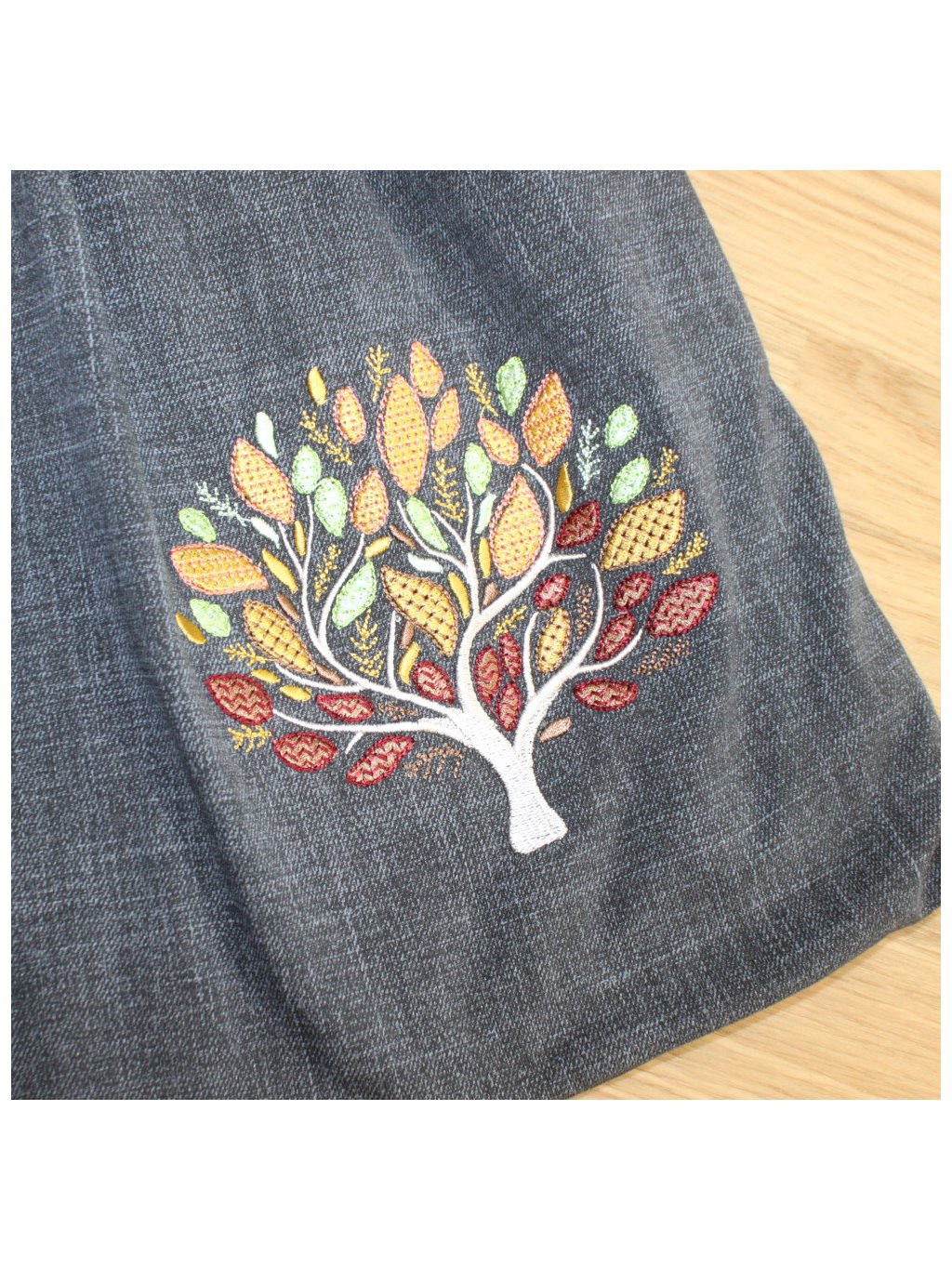 Balonová sukně, kapsy, vzhled šedé džínoviny, strom