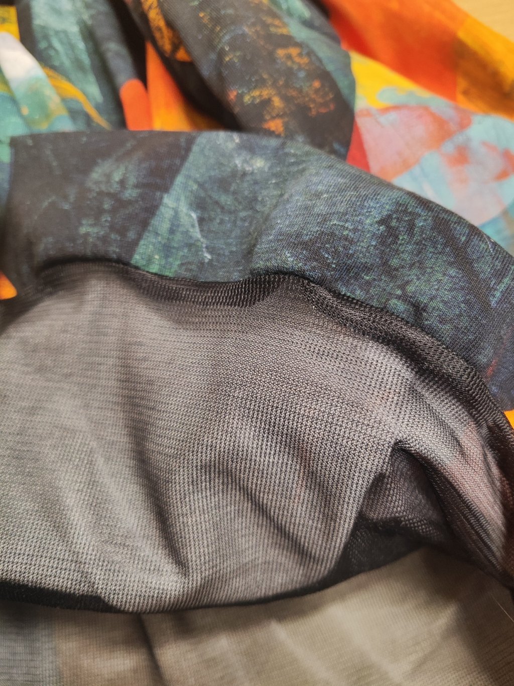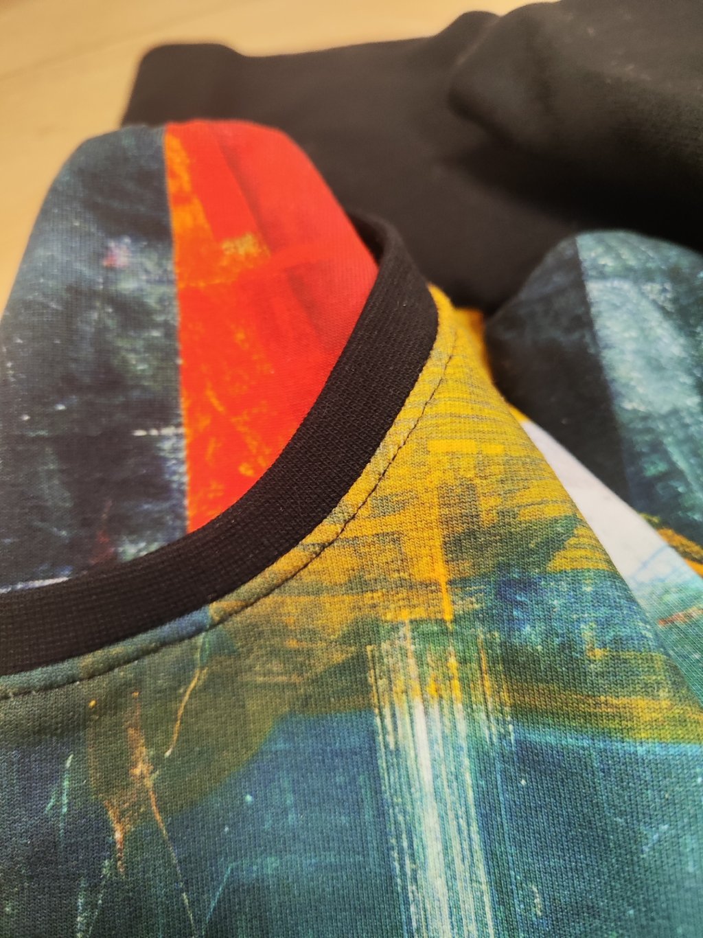 Vrchní materiál je pružný úplet: 95% bavlna / 5% elastan. Digitální tisk. Mikinovina.