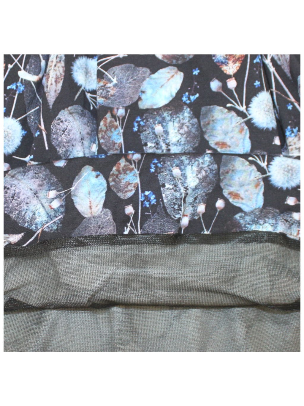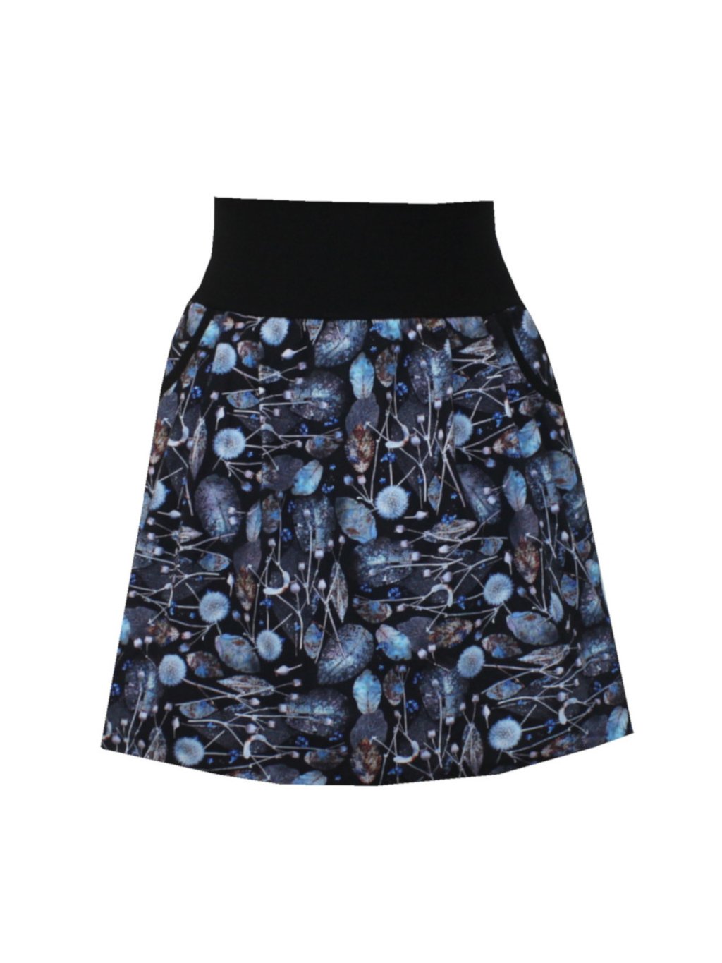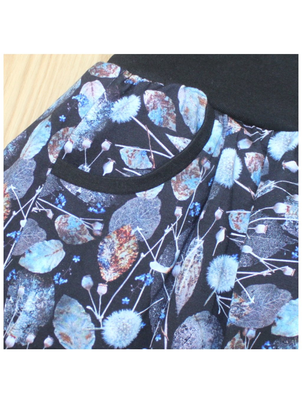 Balonová sukně, modrá s listy, kapsy