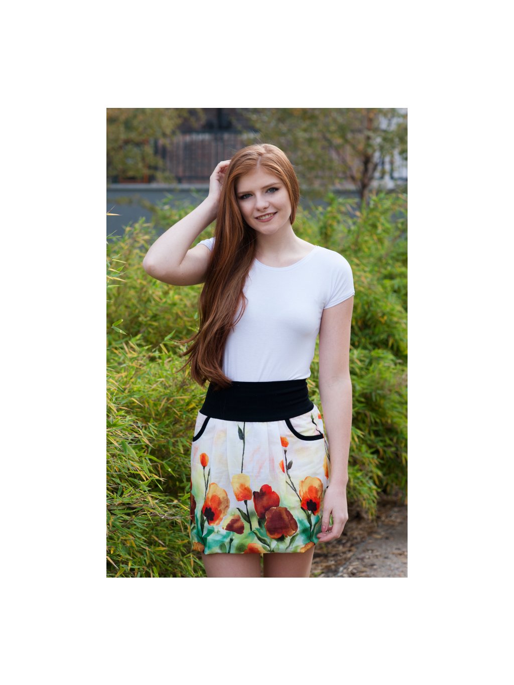 Balonová zeleno oranžová sukně, kapsy, pas černý