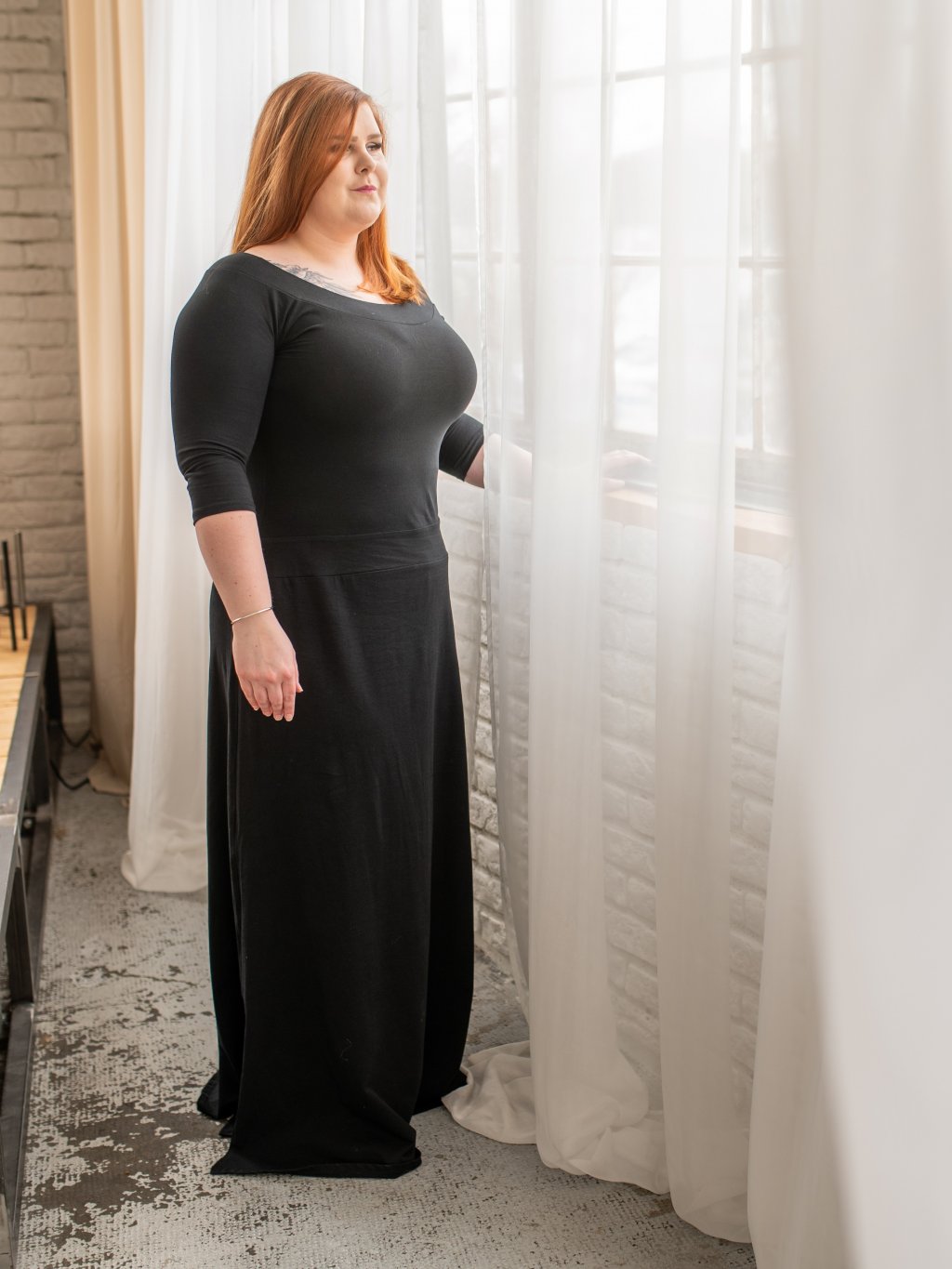Bavlněné černé dlouhé šaty REGINA 3/4 rukáv