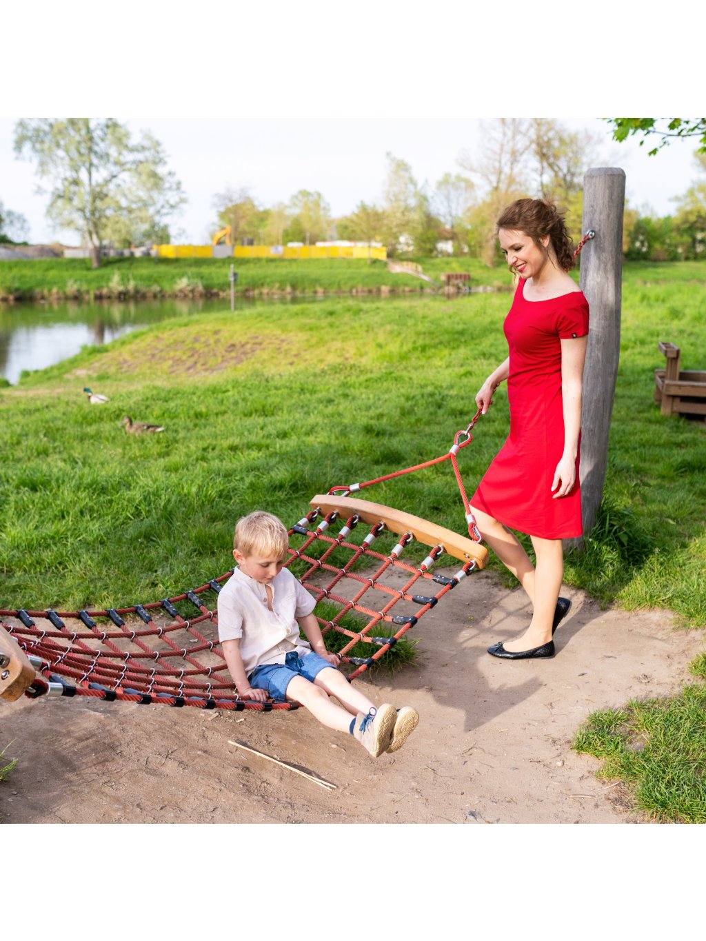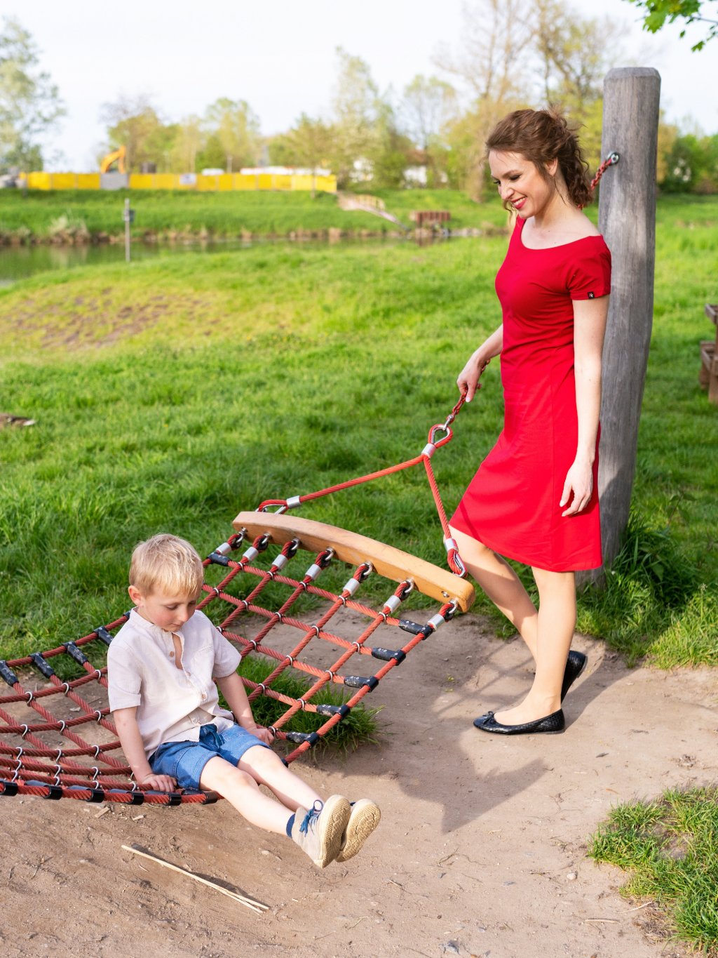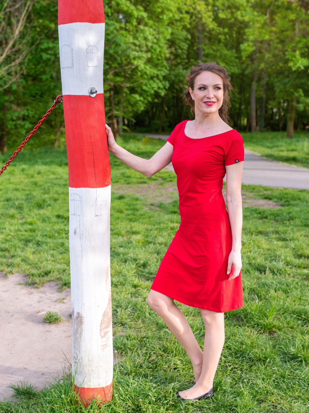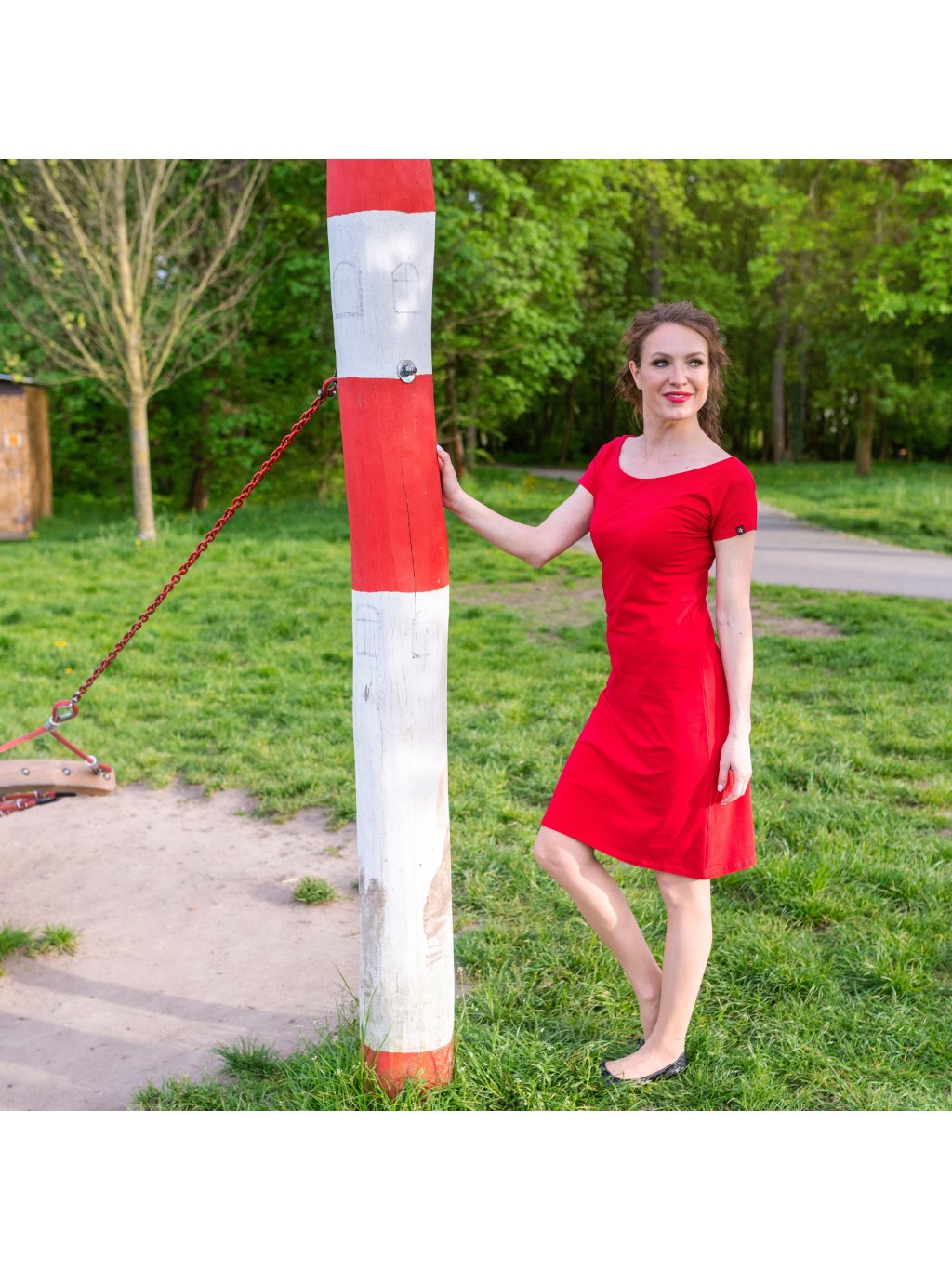 Bavlněné červené šaty LORETA, lodičkový výstřih, krátké rukávy