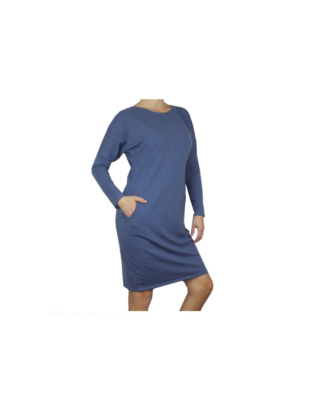 Šaty mají kulatý výstřih, netopýří rukávy (volné v podpaží) a kapsy v bocích.