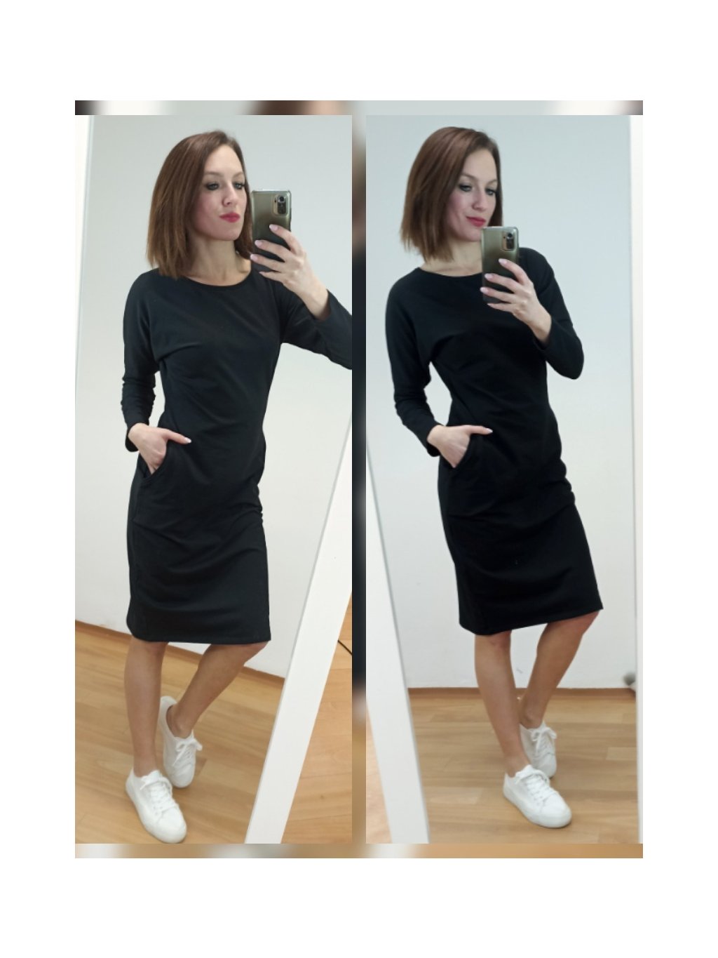 Černé dámské šaty ADRIANA podzim/zima, dlouhé rukávy, kapsy