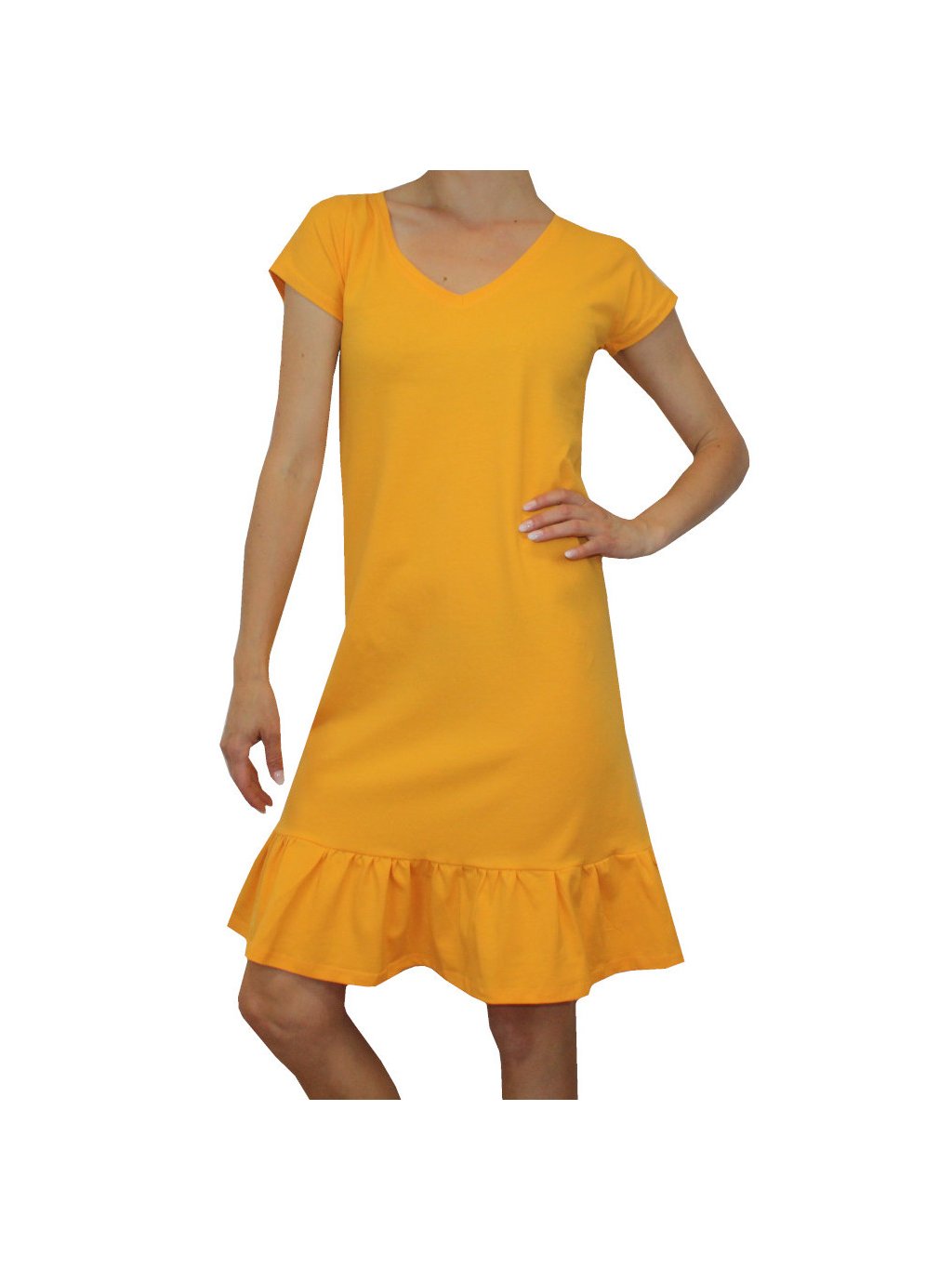 Žluto oranžové bavlněné letní šaty CELESTE, krátký rukáv, výstřih do V
