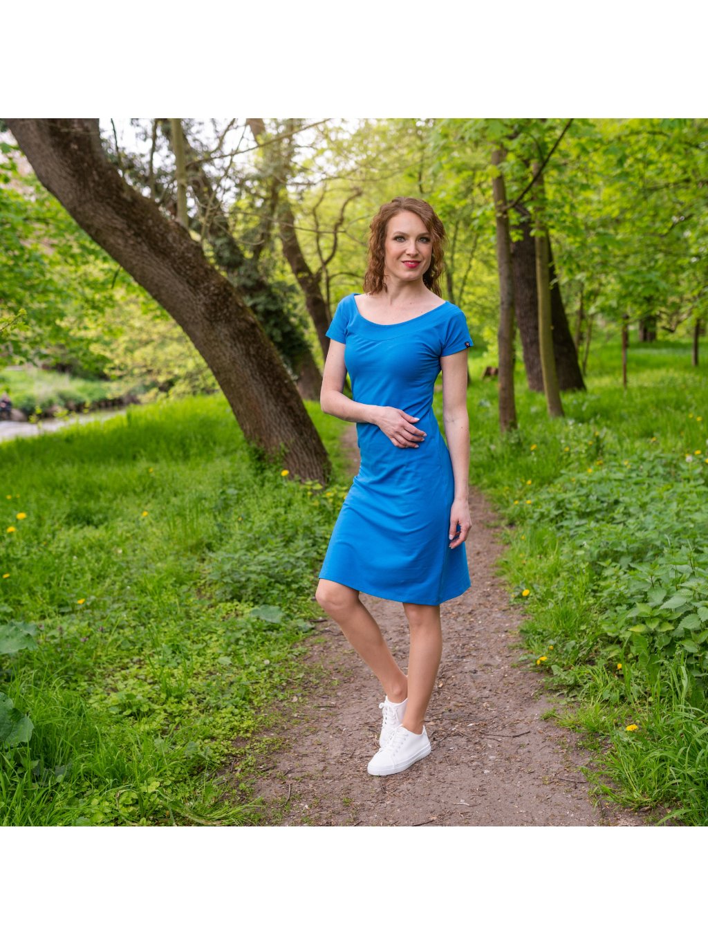 Bavlněné modré šaty LORETA, lodičkový výstřih, krátké rukávy