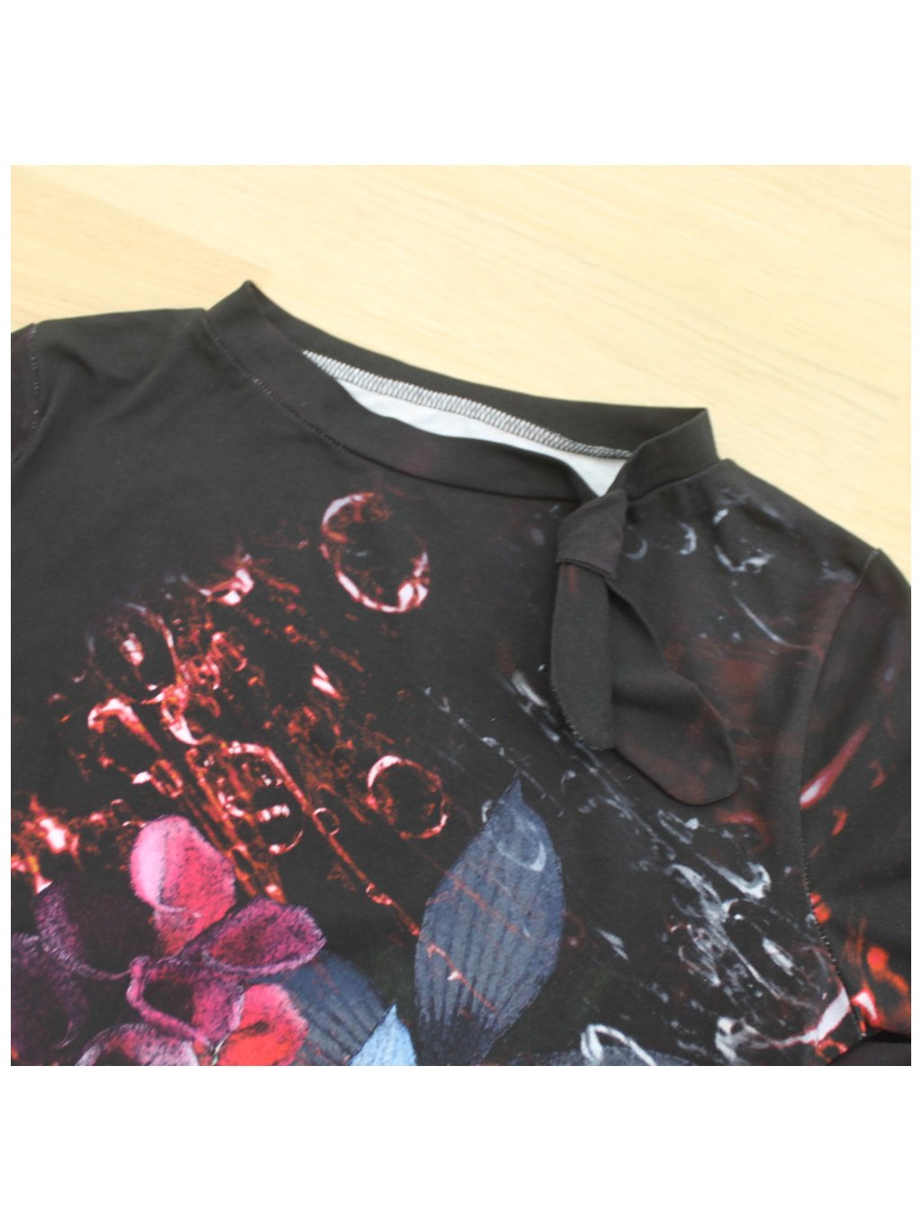 Dámské polopřiléhavé šaty BIANCA, dlouhé rukávy, ozdobná mašle u krku, květiny a vzory