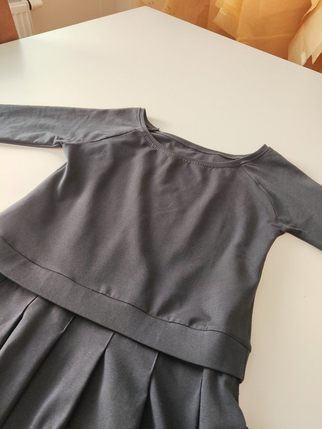 Průkrčník je lodičkový a působí elegantně a jemně. Rukávy jsou raglánové a standardně ve 3/4 délce, rády vám je ale upravíme i na dlouhé.