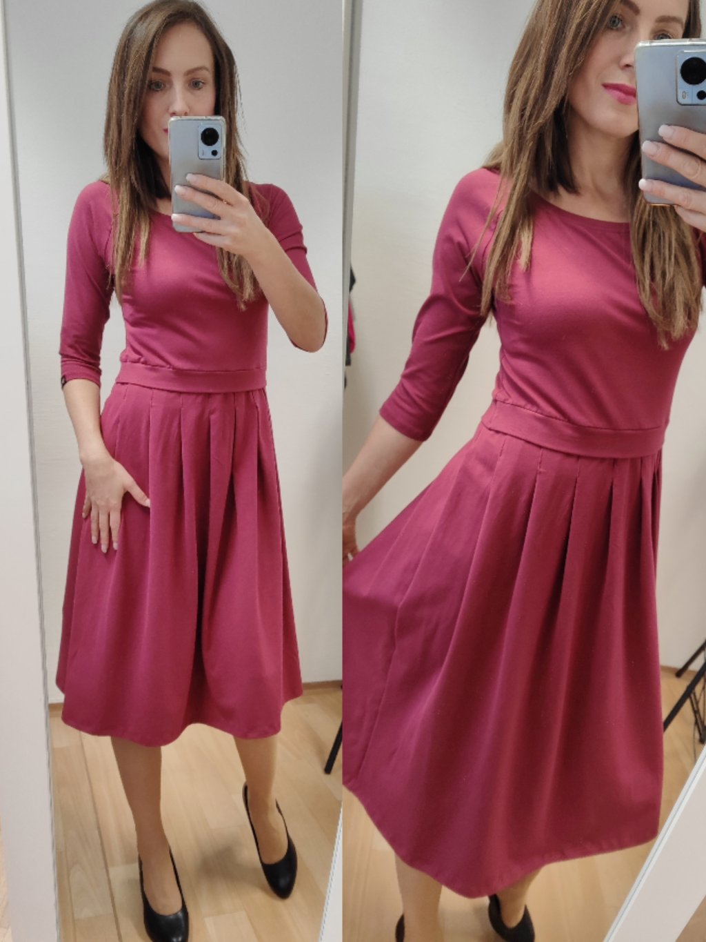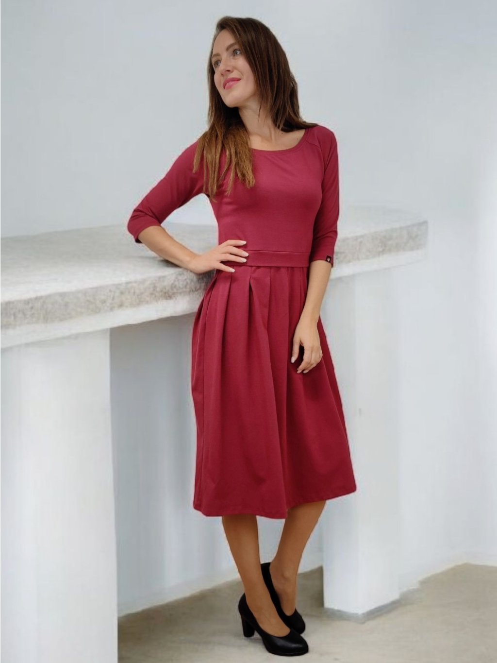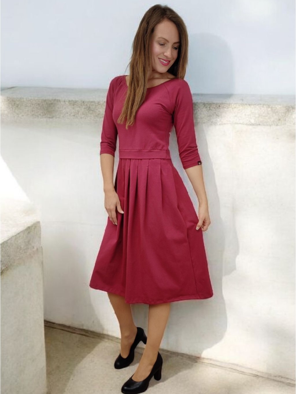 Střih šatů ALVA v třešňové barvě Cherry wine jsou jednobarevným kouskem, který využijete po celý rok.