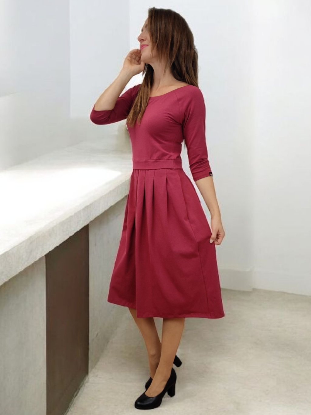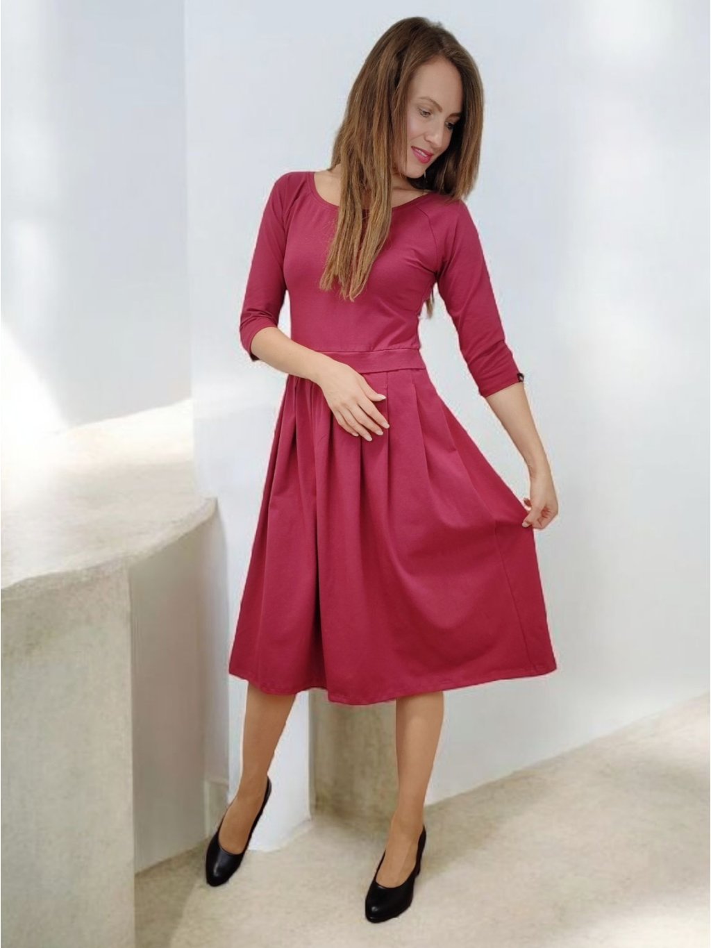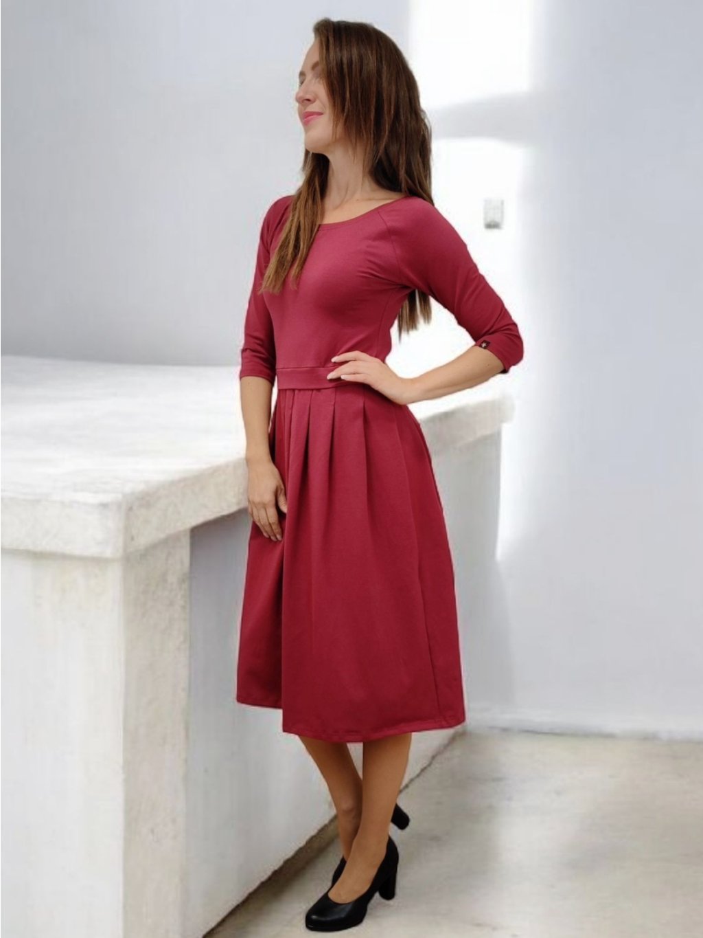 Střih šatů ALVA v třešňové barvě Cherry wine jsou jednobarevným kouskem, který využijete po celý rok.