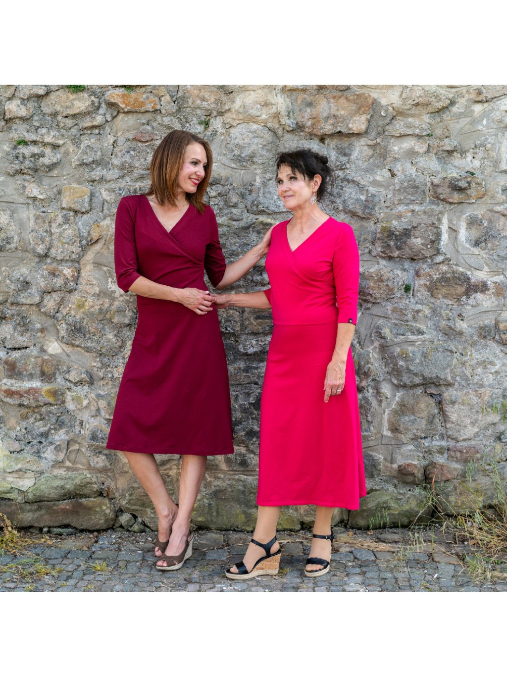 Bavlněné vínově červené decentní šaty SAPHO, výstřih do V