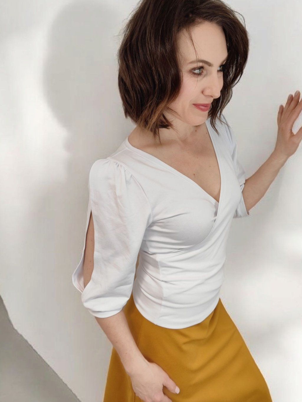 Dámské tričko s kříženým výstřihem do V JAHUU bílé