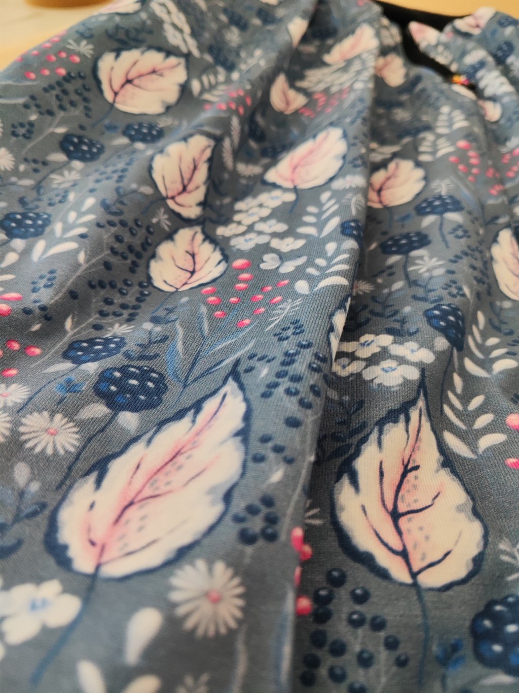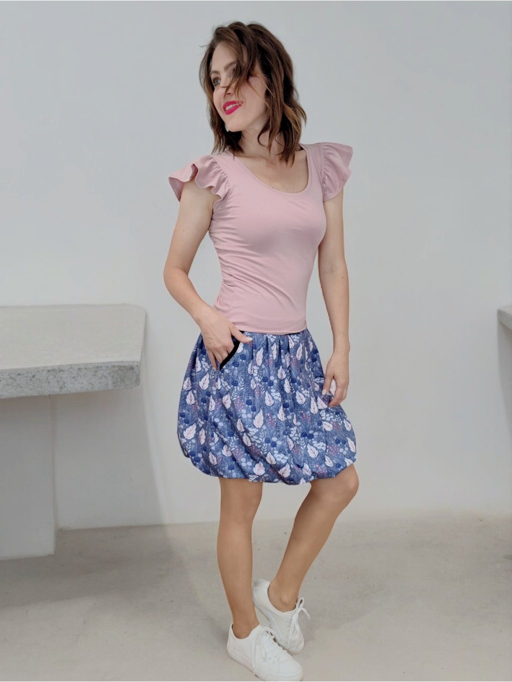 Balonová sukně se vzorem ostružin. Sukně má střih STELA (bohatší oproti střihu KATY).