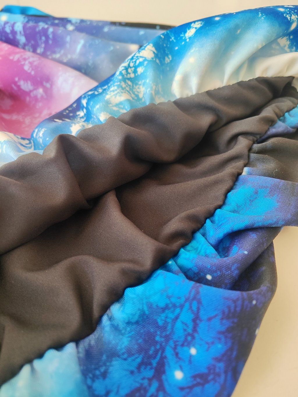 Vrchní materiál je ze silnější hřejivého úpletu. 92% polyester / 8% elastan. Z rubu je počesaný.