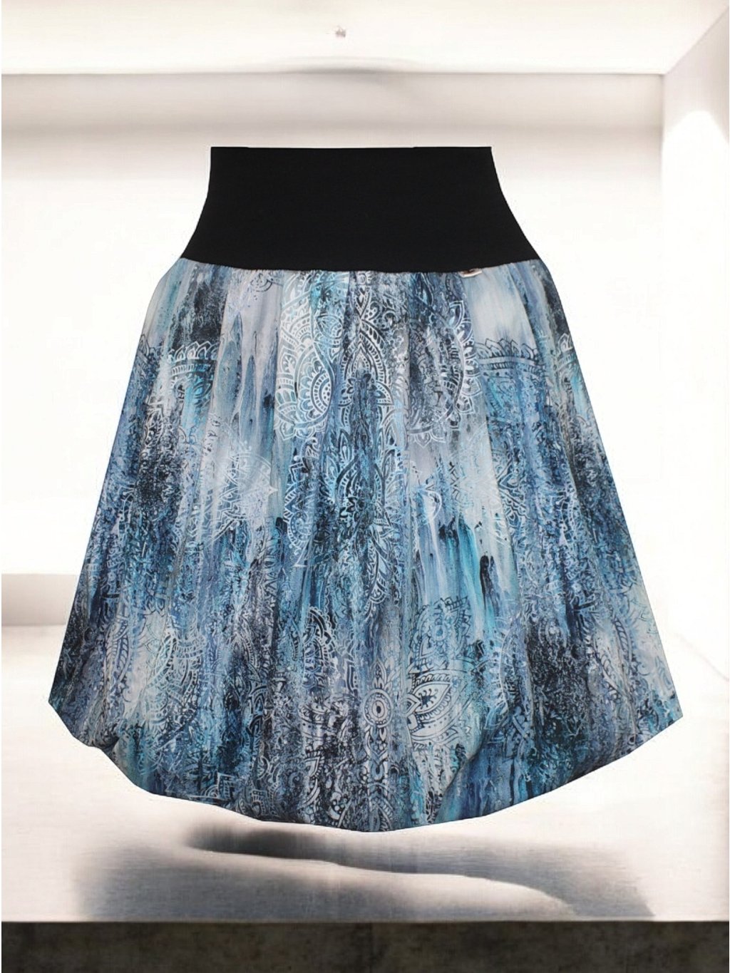 Bohatě balonová sukně STELA, modrá s ornamenty