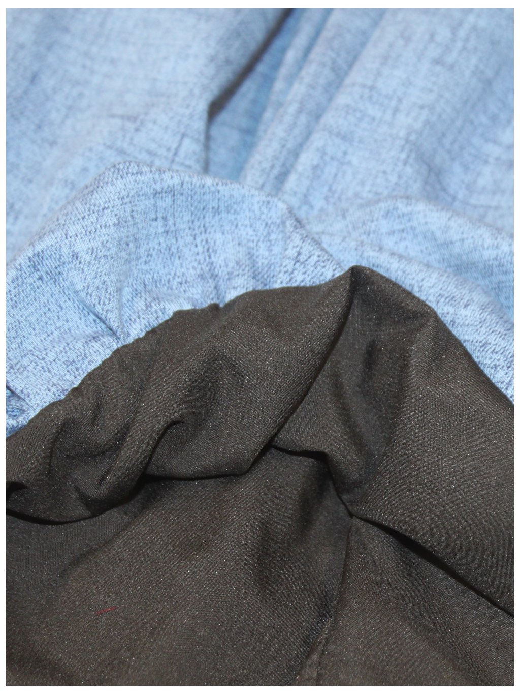 Sukně je z dvojitého materiálu - vrchní úpletový materiál a spodní spodnička. V dolním kraji jsou materiály sešité a