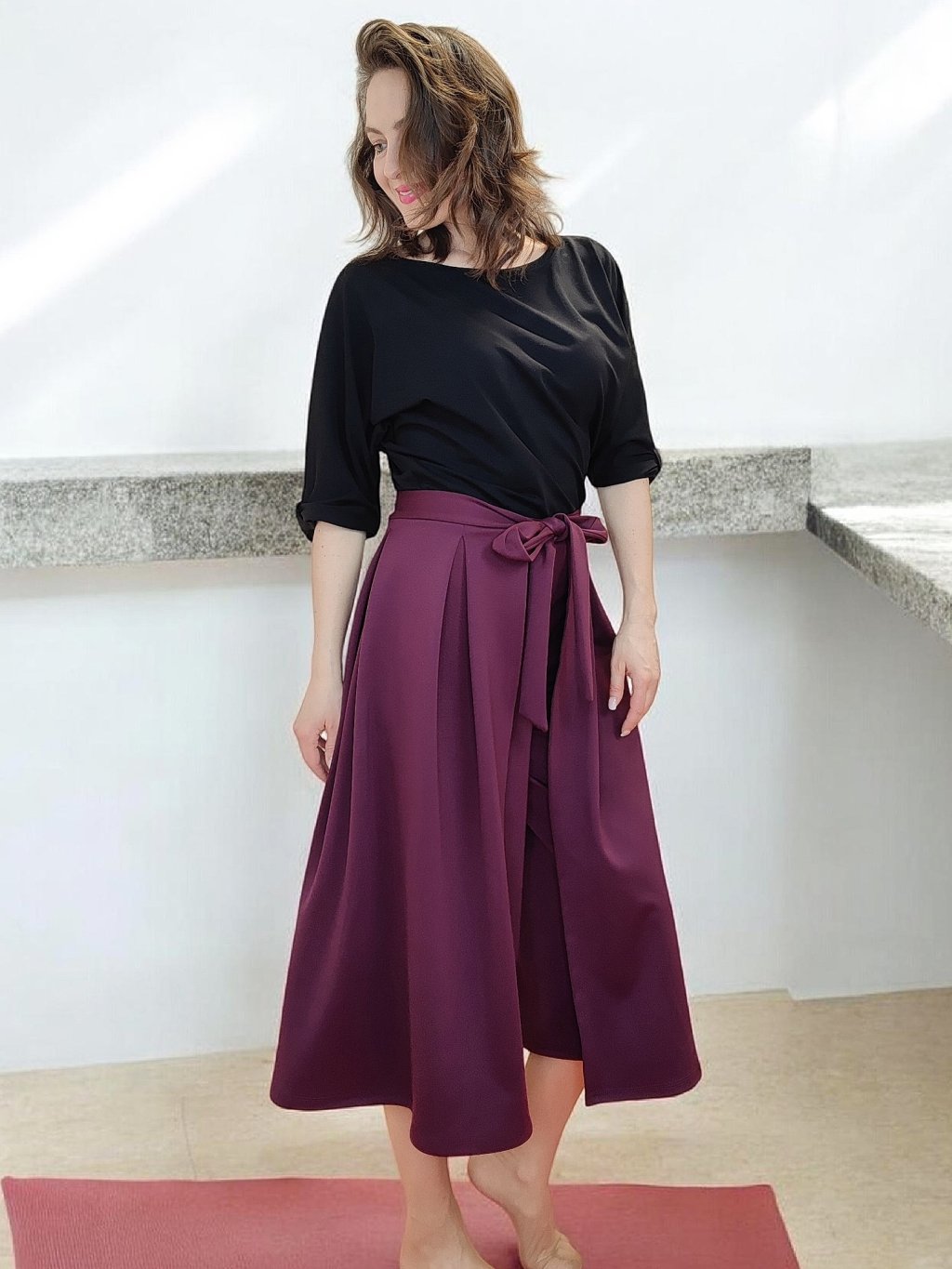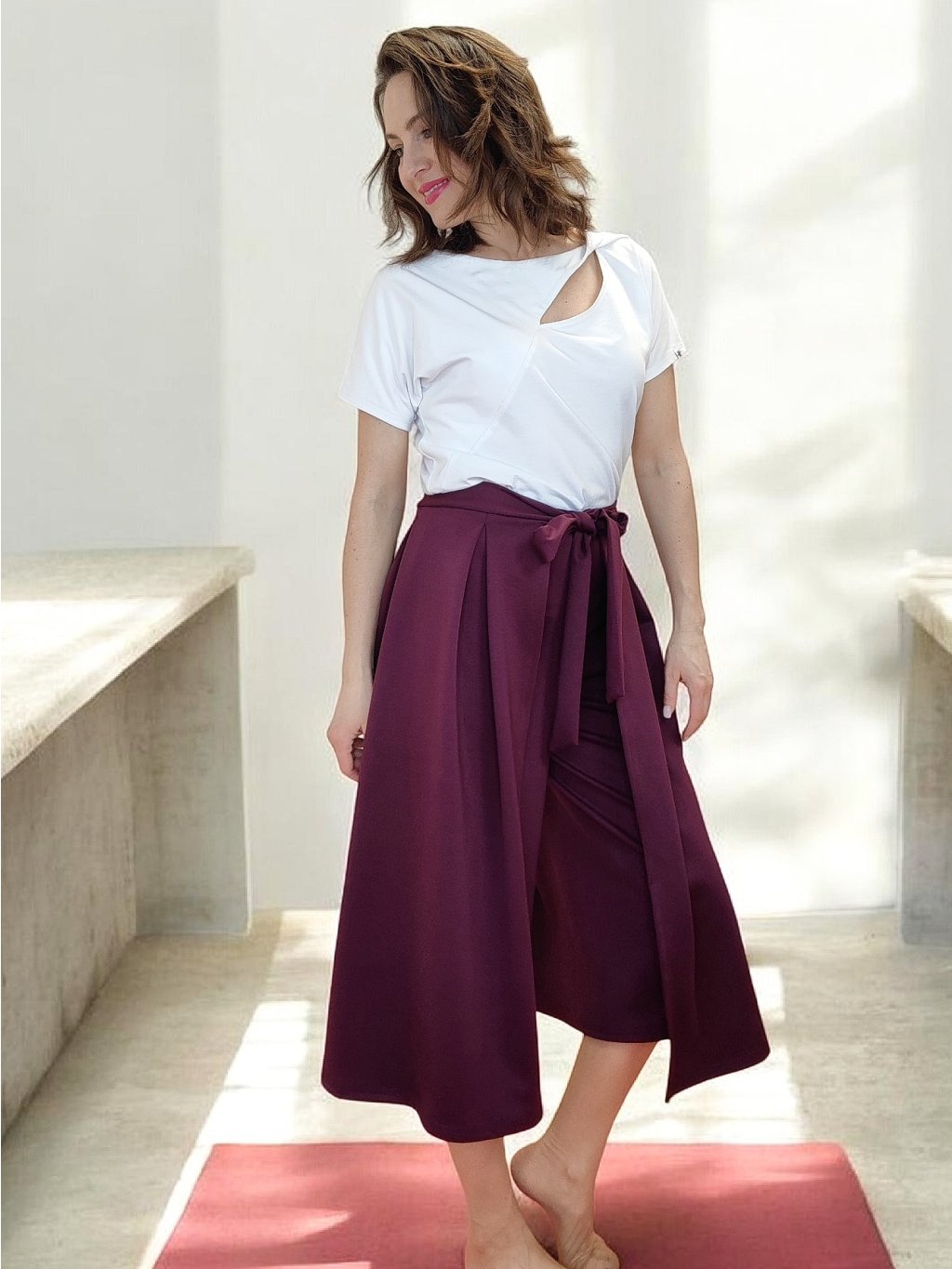 Bordo culottes kalhotová sukně jsou ideální pro ženy, které chtějí spojit pohodlí kalhot a ženský styl sukně.