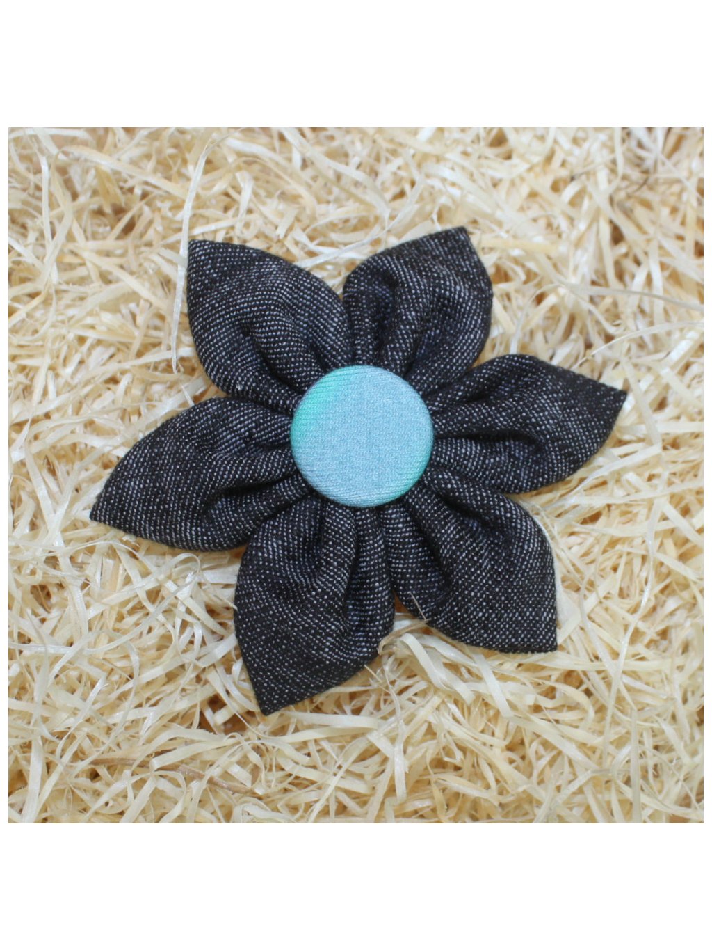 Brož / spona do vlasů - tmavě šedá, světle modrý střed
