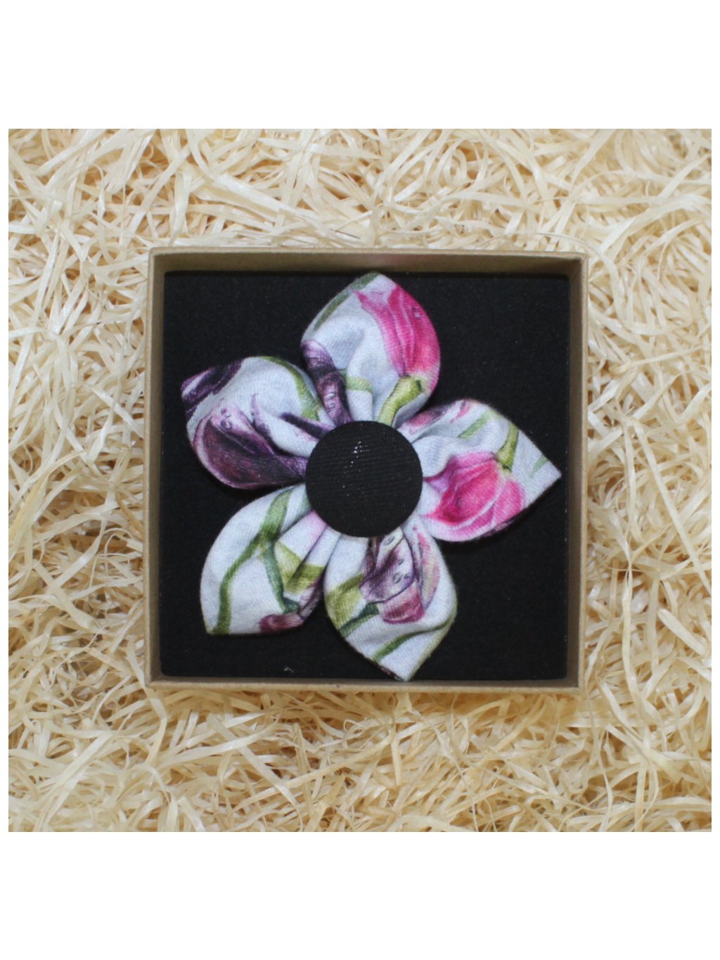 Látková brož se hodí jako doplněk na např. na sako, svetr nebo halenku. Každý oděv Vám snadno oživí brož z naší dílny.