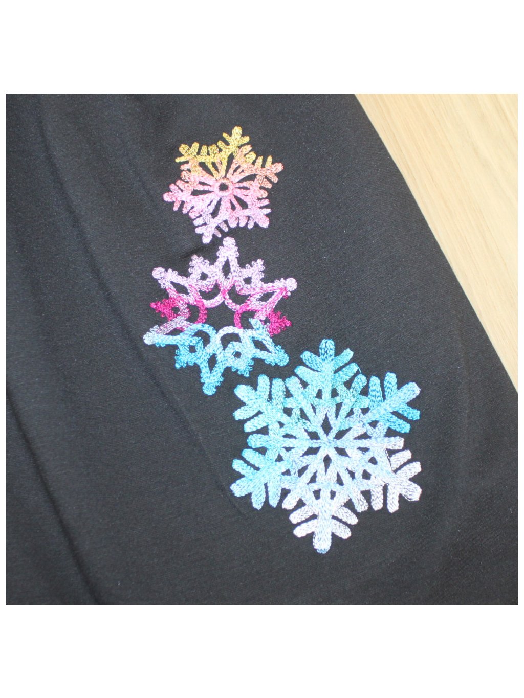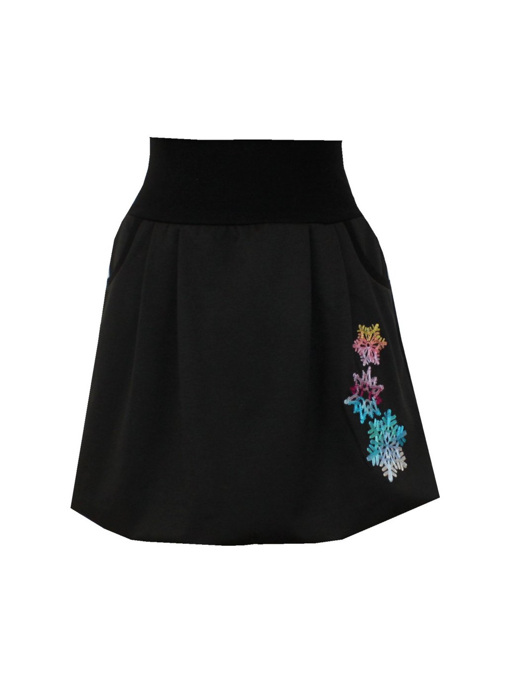 Černá sukně je balonového střihu. Na boku má výšivku.