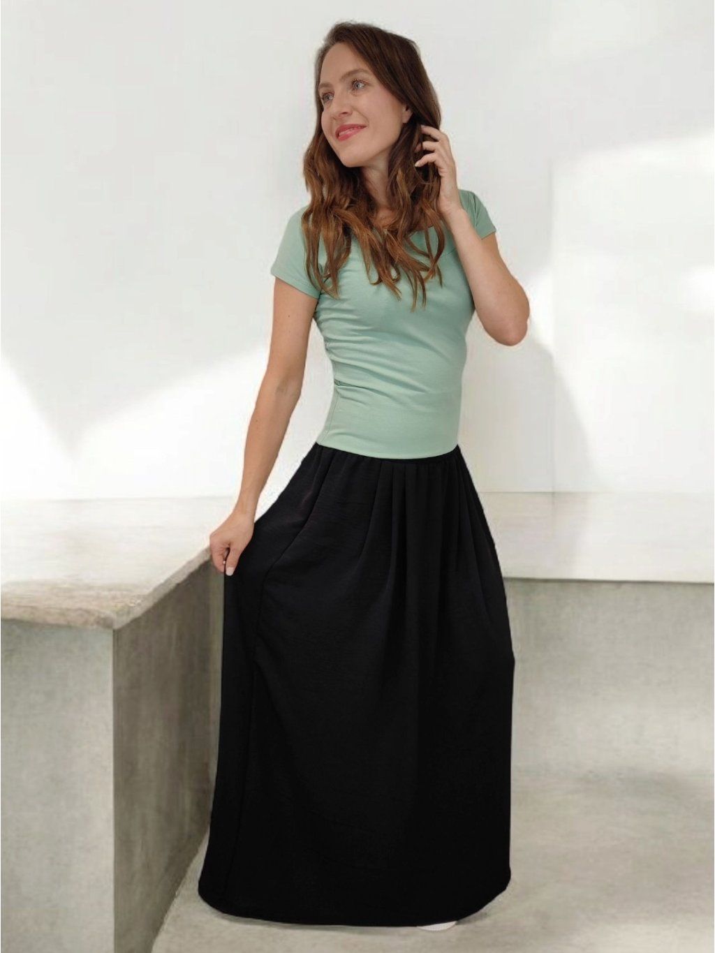 Černá dlouhá sukně HELENE, mačkaný materiál