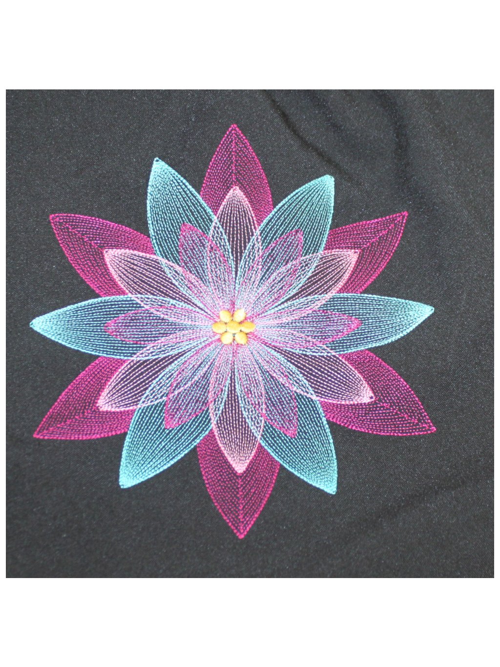 Na boku je výšivka mandaly - vícebarevná.