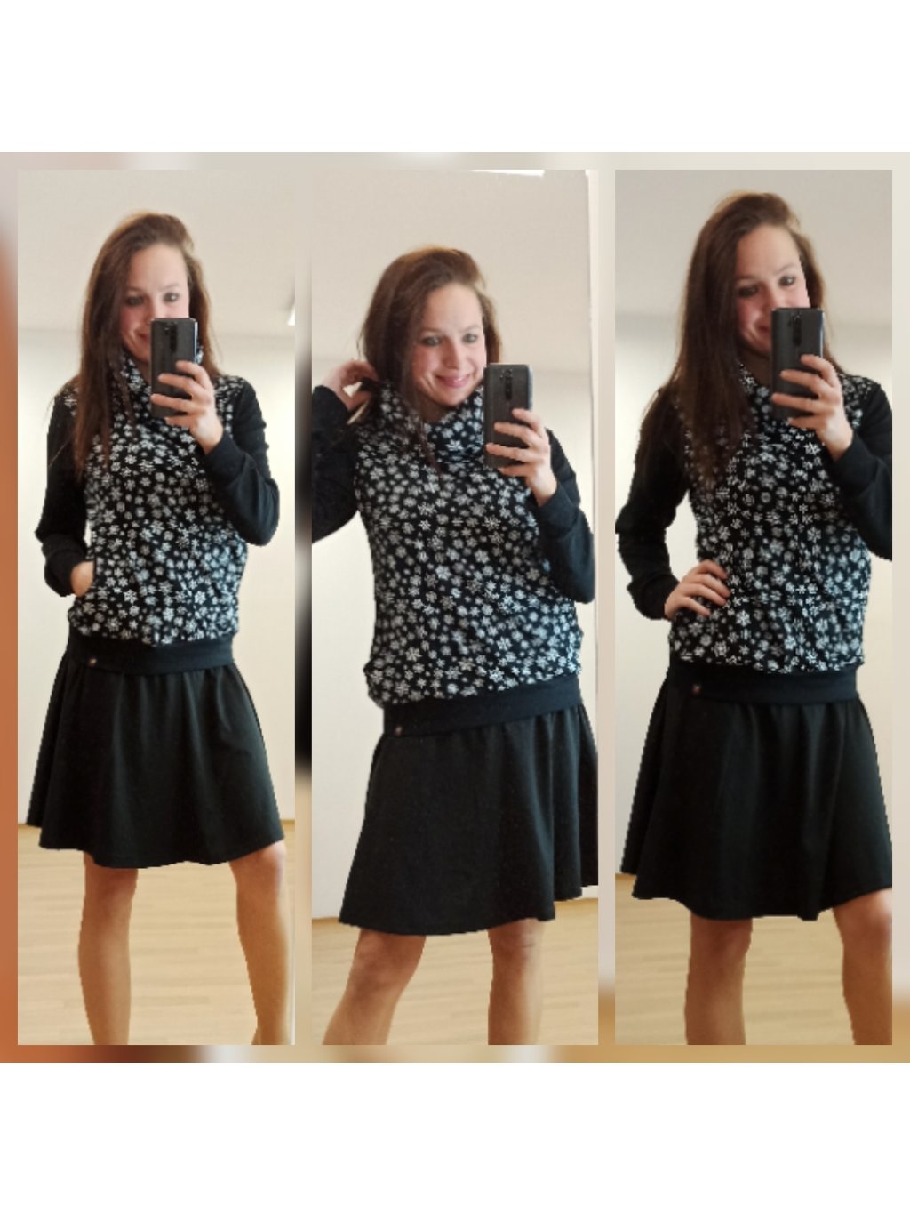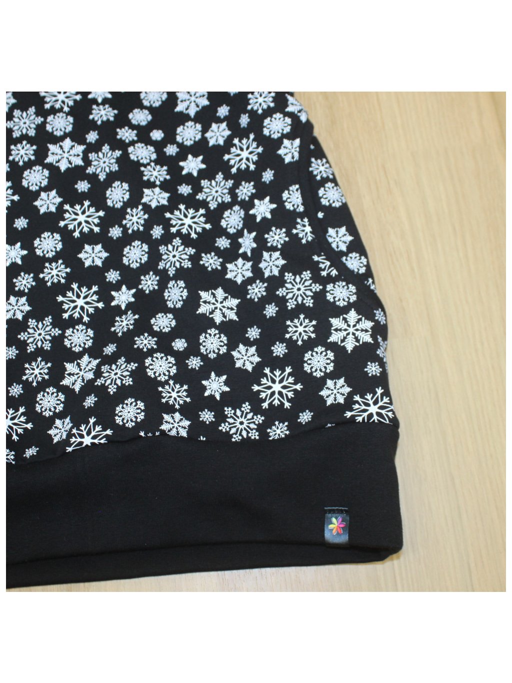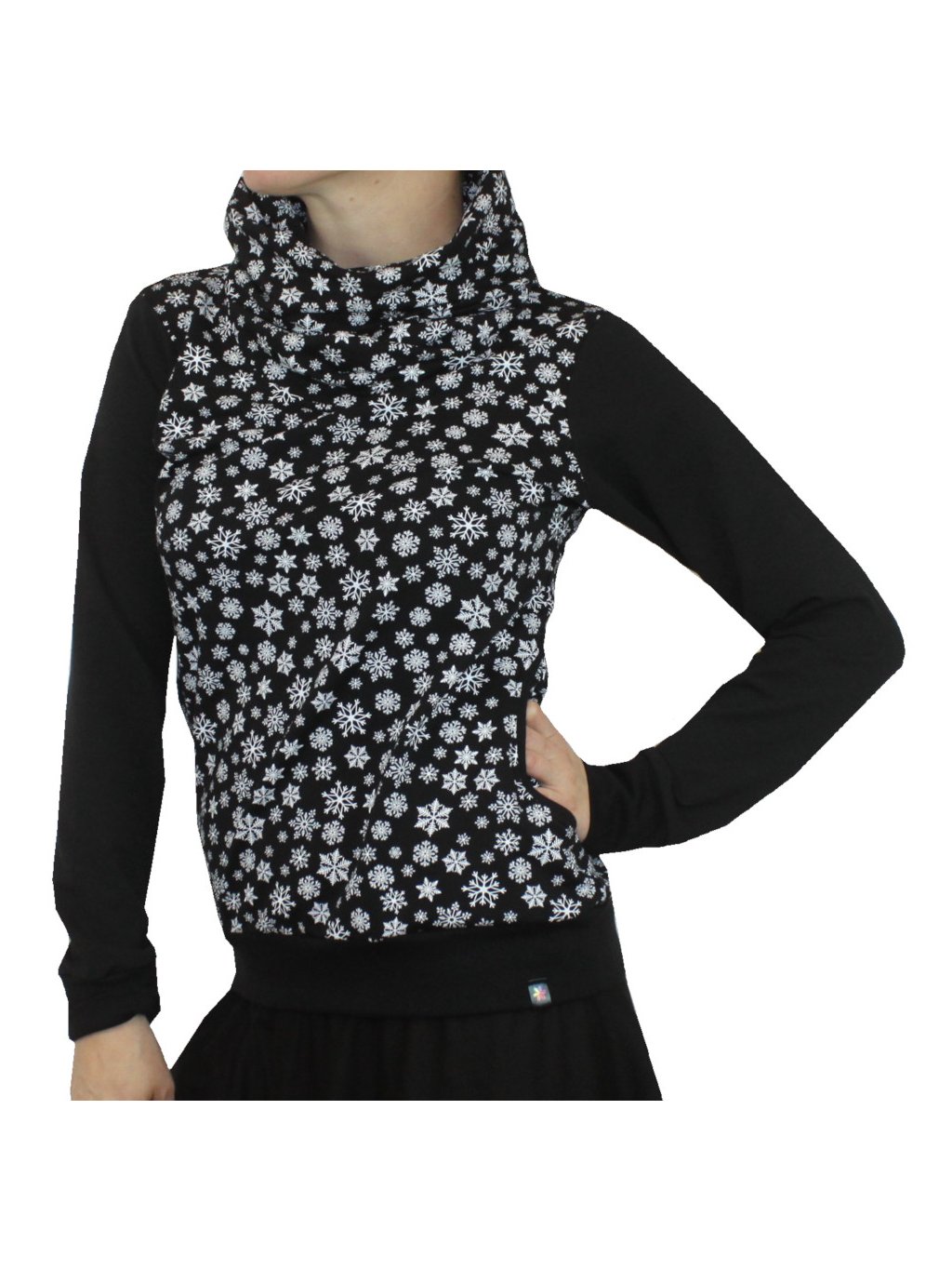 Černá mikina, sněhové vločky, s rolákem a kapsami
