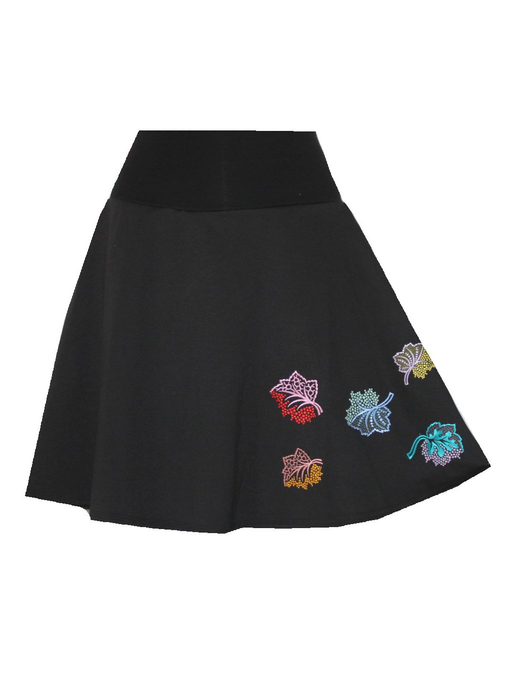 Na boku sukně je vyšitý obrázek - listy, vícebarevné. |