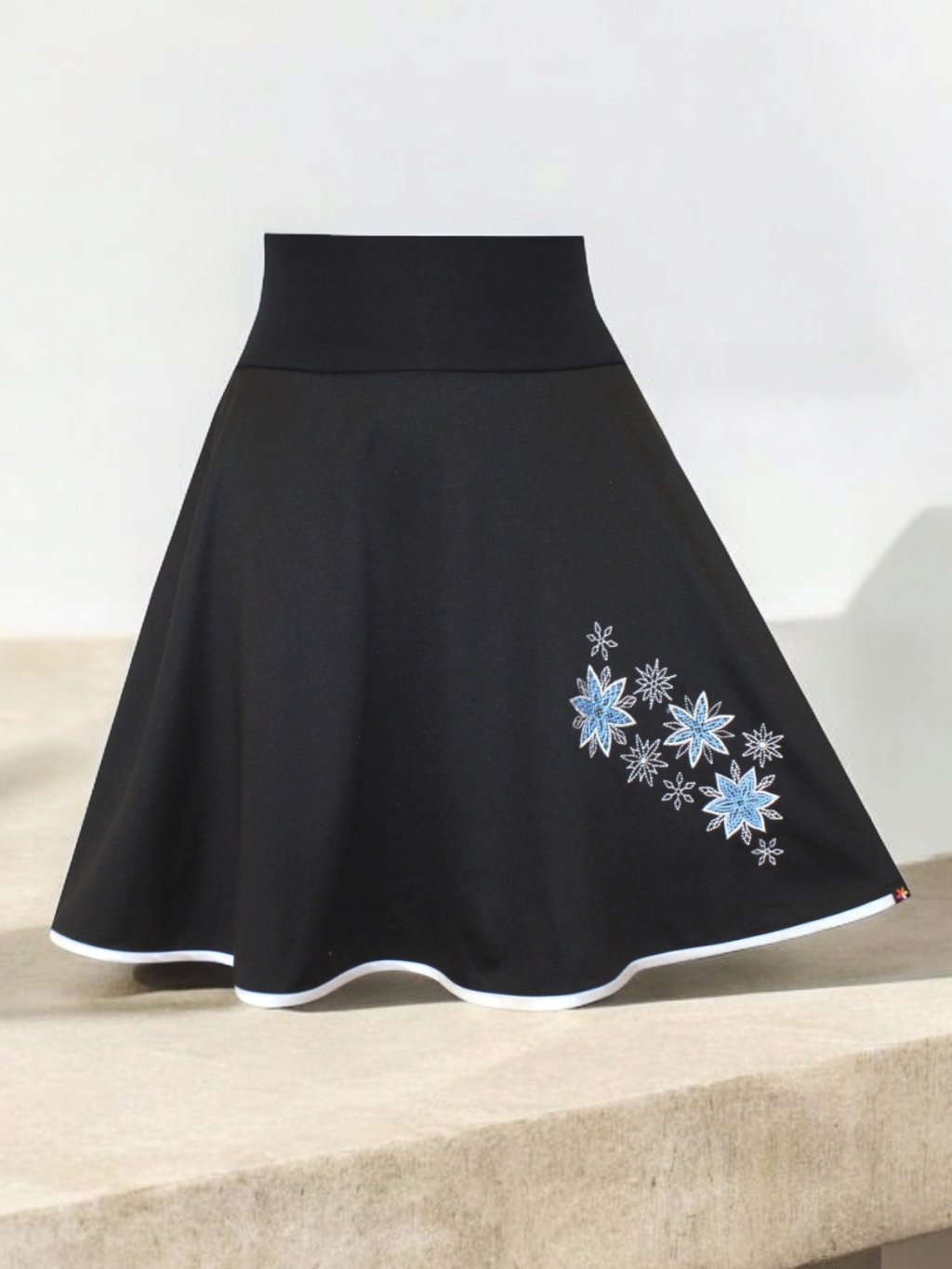 Černá půlkolová sukně HEIDY, lem, bílo-modré vločky
