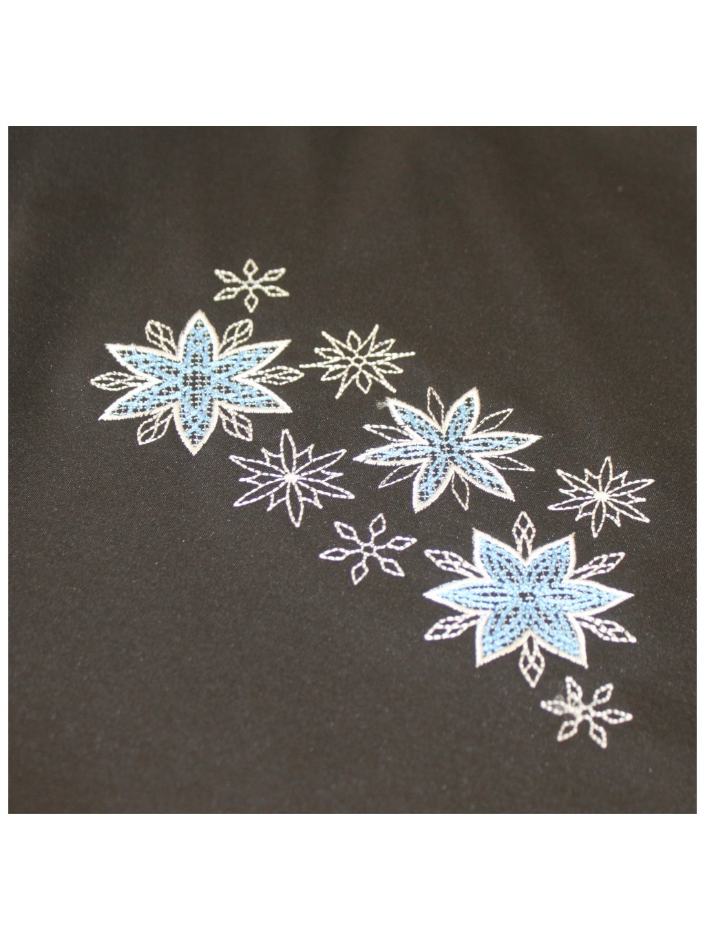 Na boku sukně je vyšitý obrázek - vícebarevné vločky. |