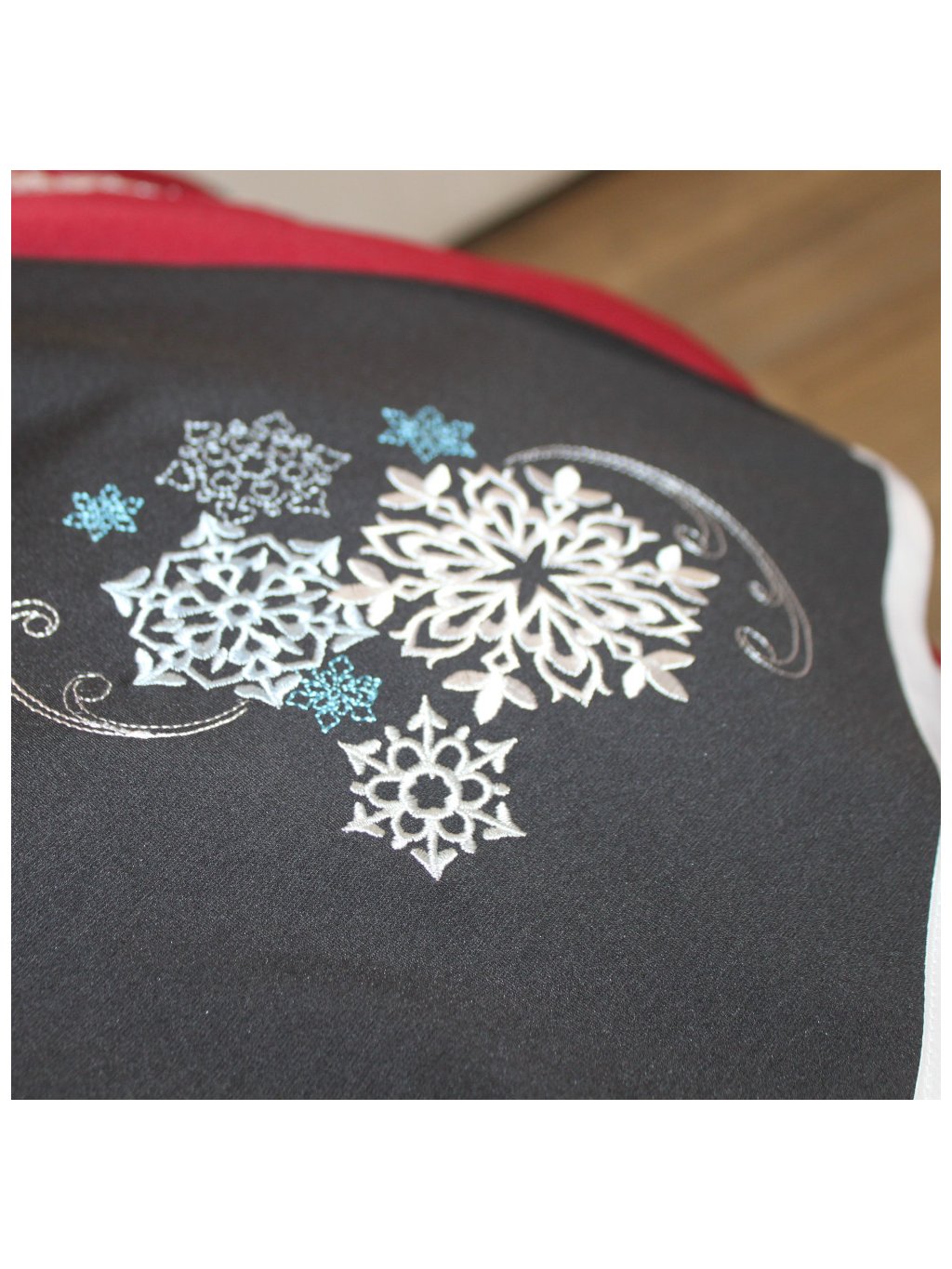 Na boku je výšivka vloček - bílá barva.