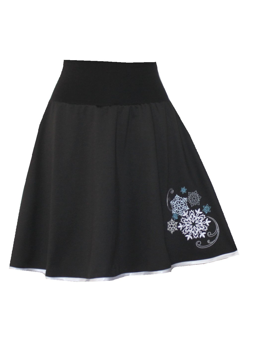 Černá půlkolová sukně se spodničkou, bílý lem, vločky