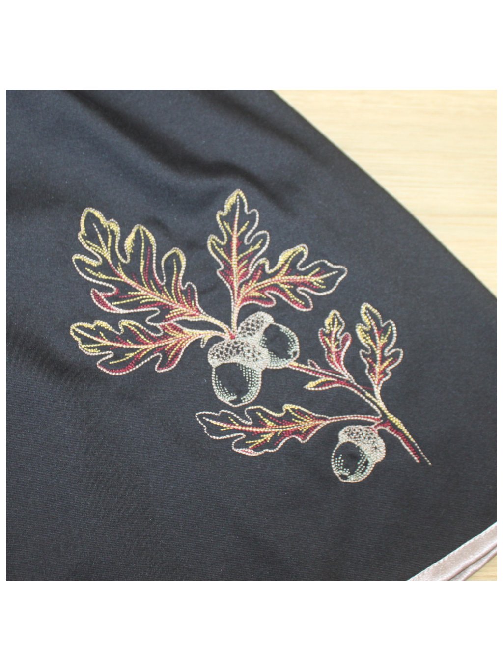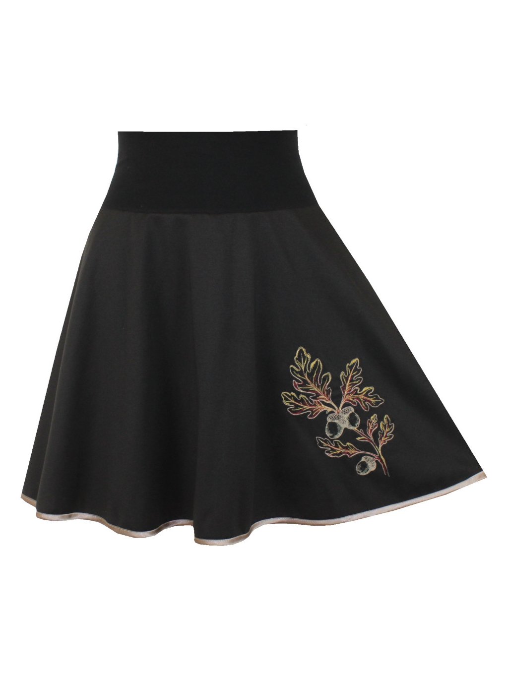 Černá půlkolová sukně se spodničkou, lem, dubová větvička