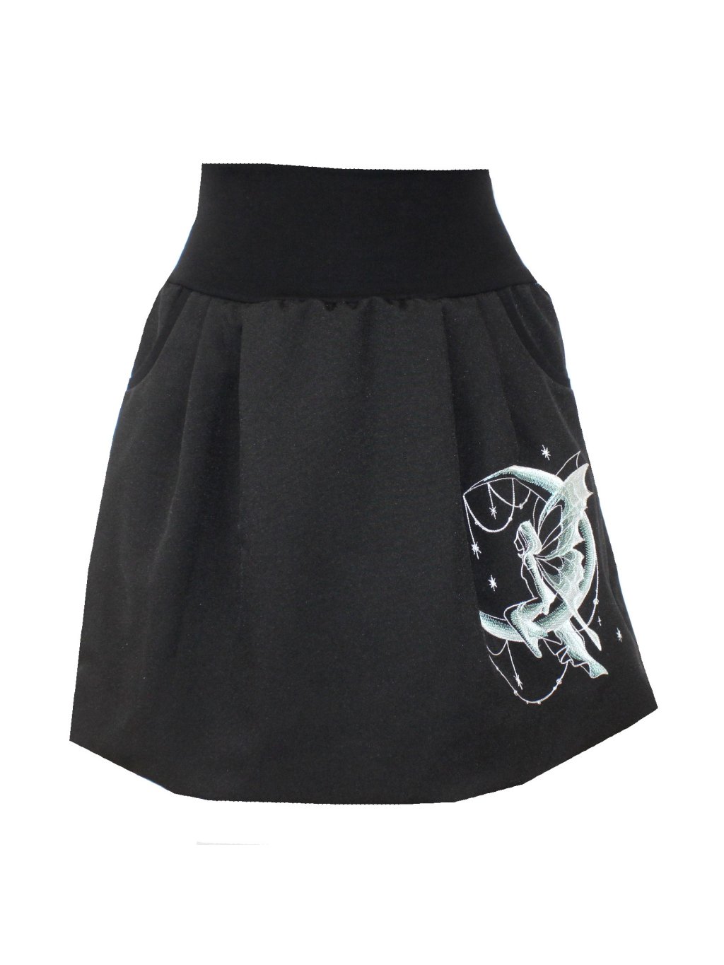 Černá sukně kostýmová, kapsy, víla a měsíc