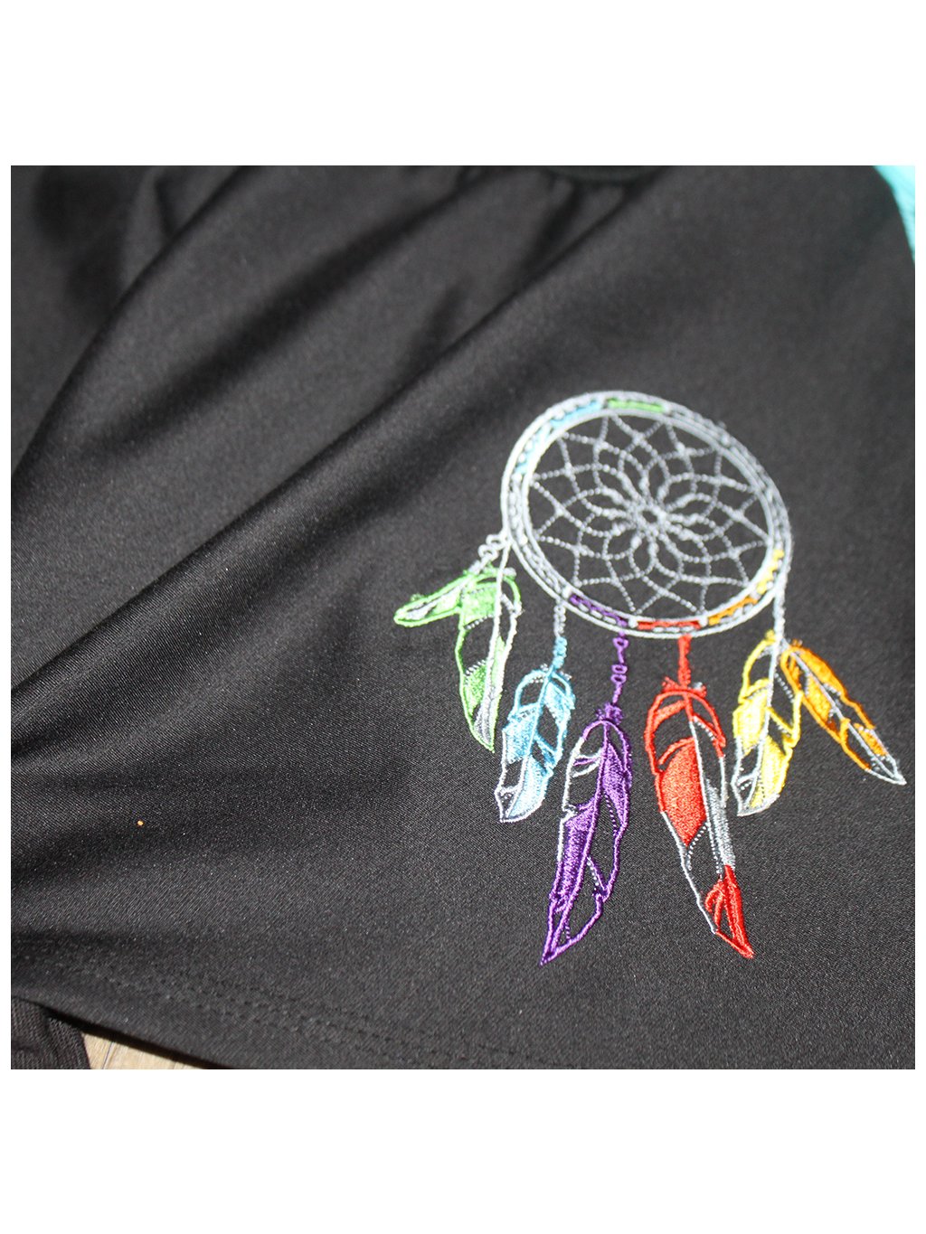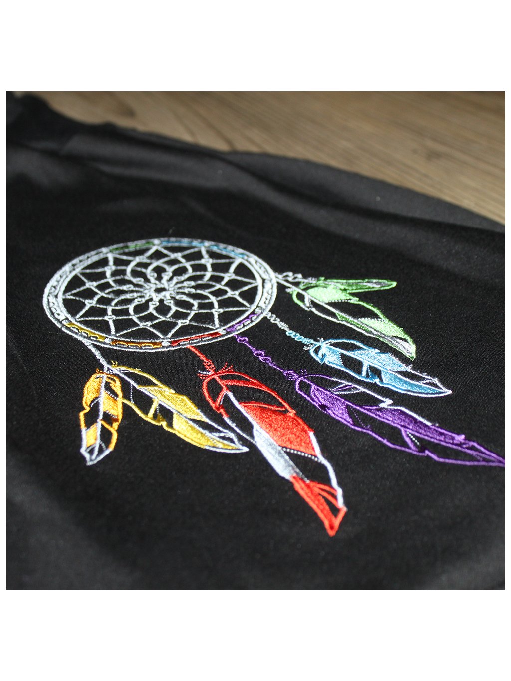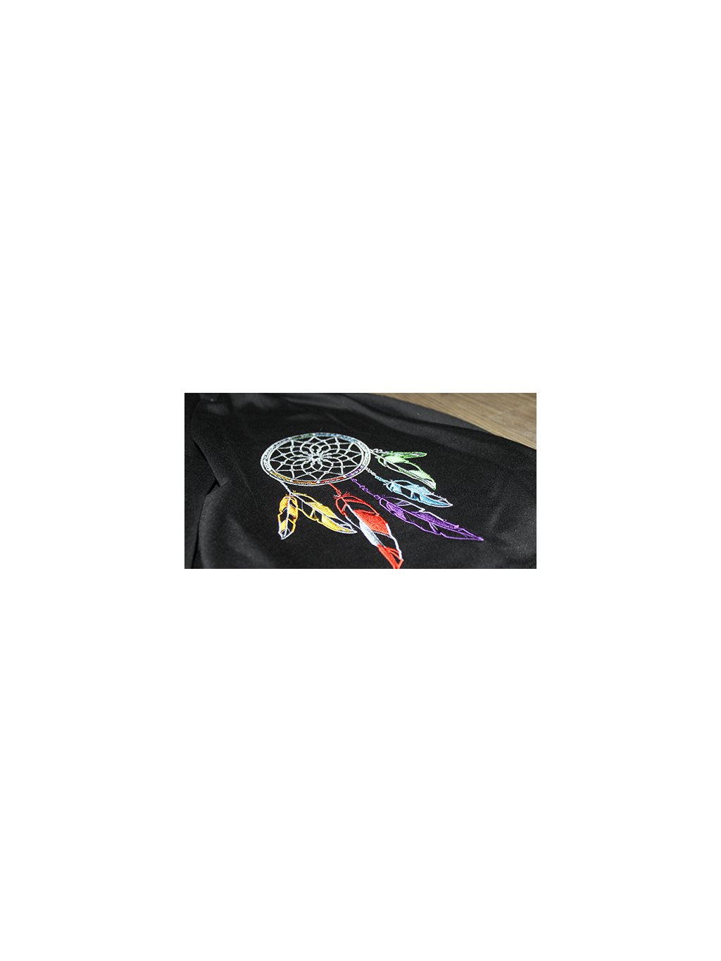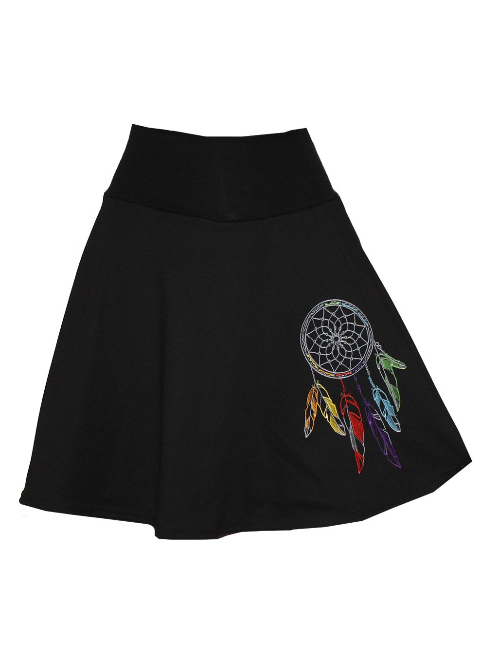 Na boku sukně je vyšitý obrázek - lapač snů, vícebarevný. Na kratší sukni je lapač menší, na větší sukni - větší rozměr lapače. Přesně jak vidíte na fotkách. |