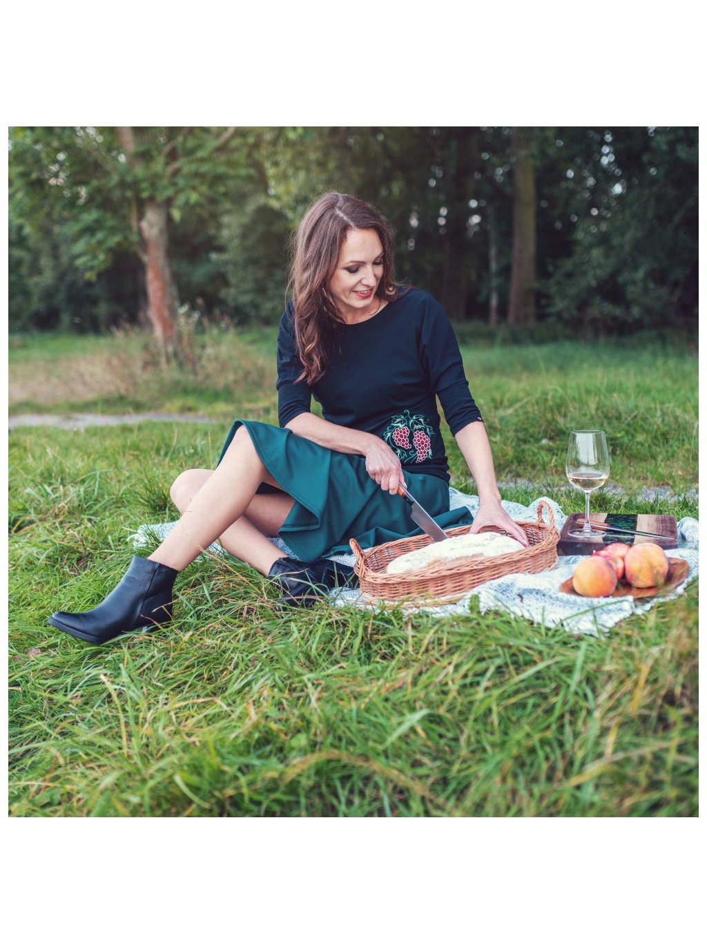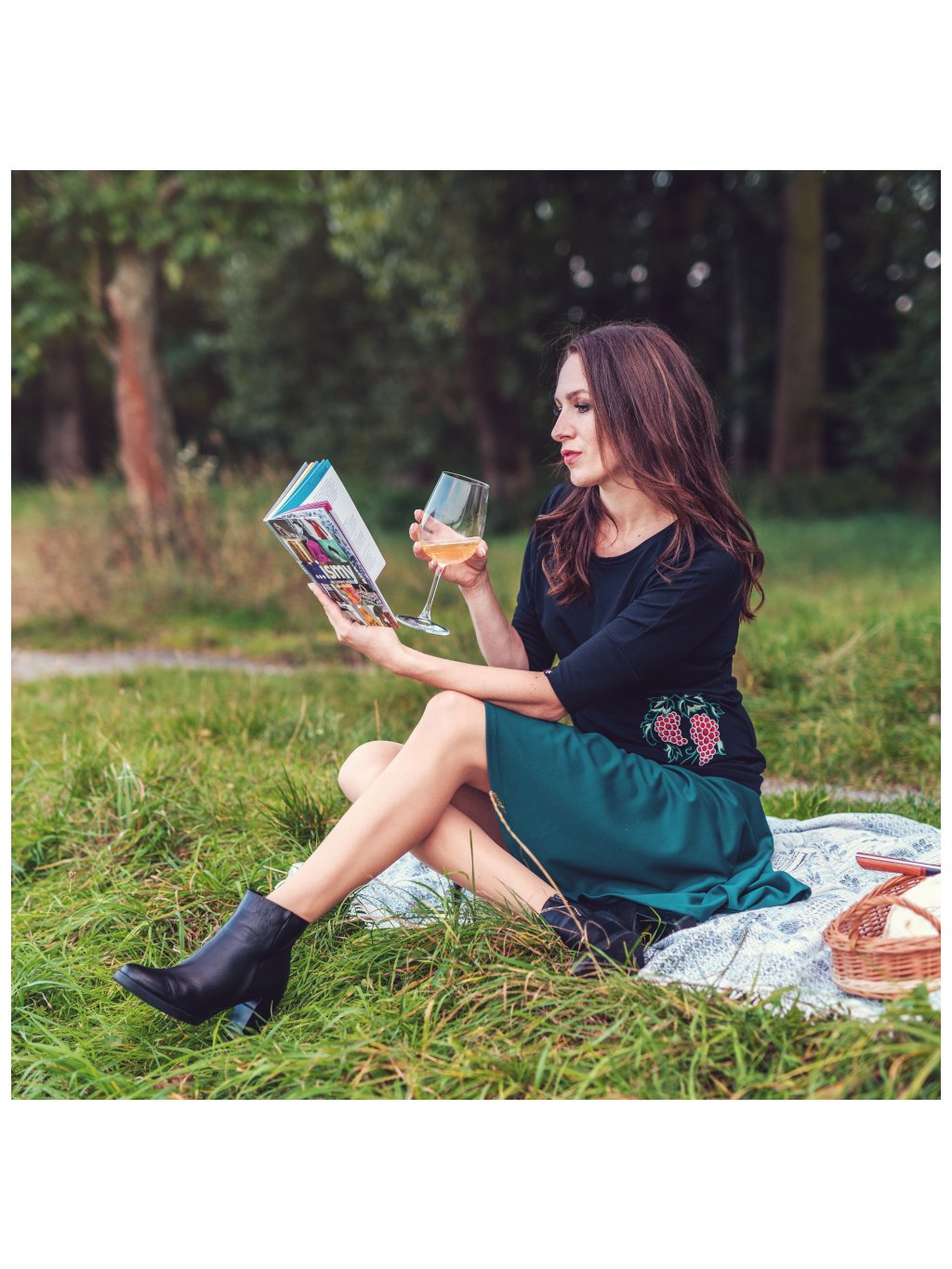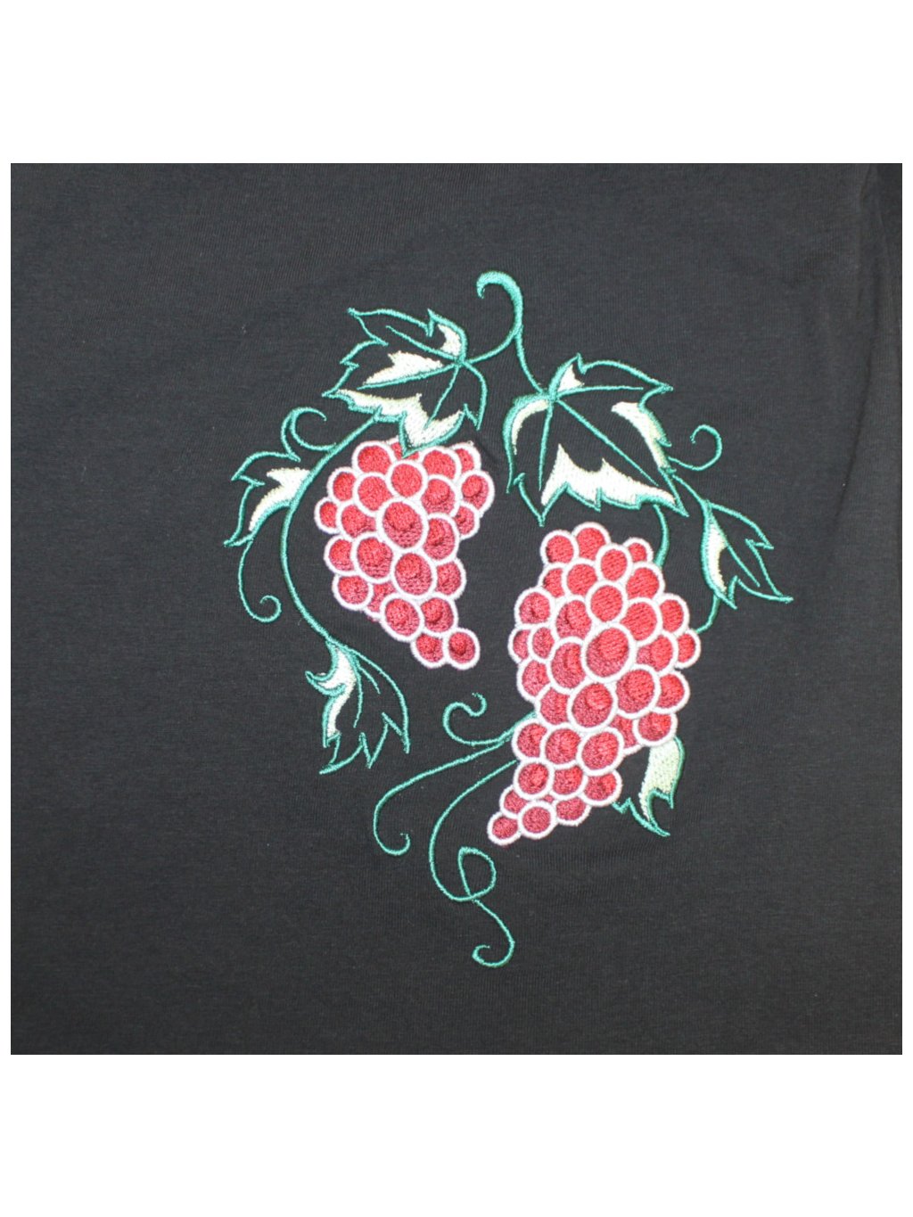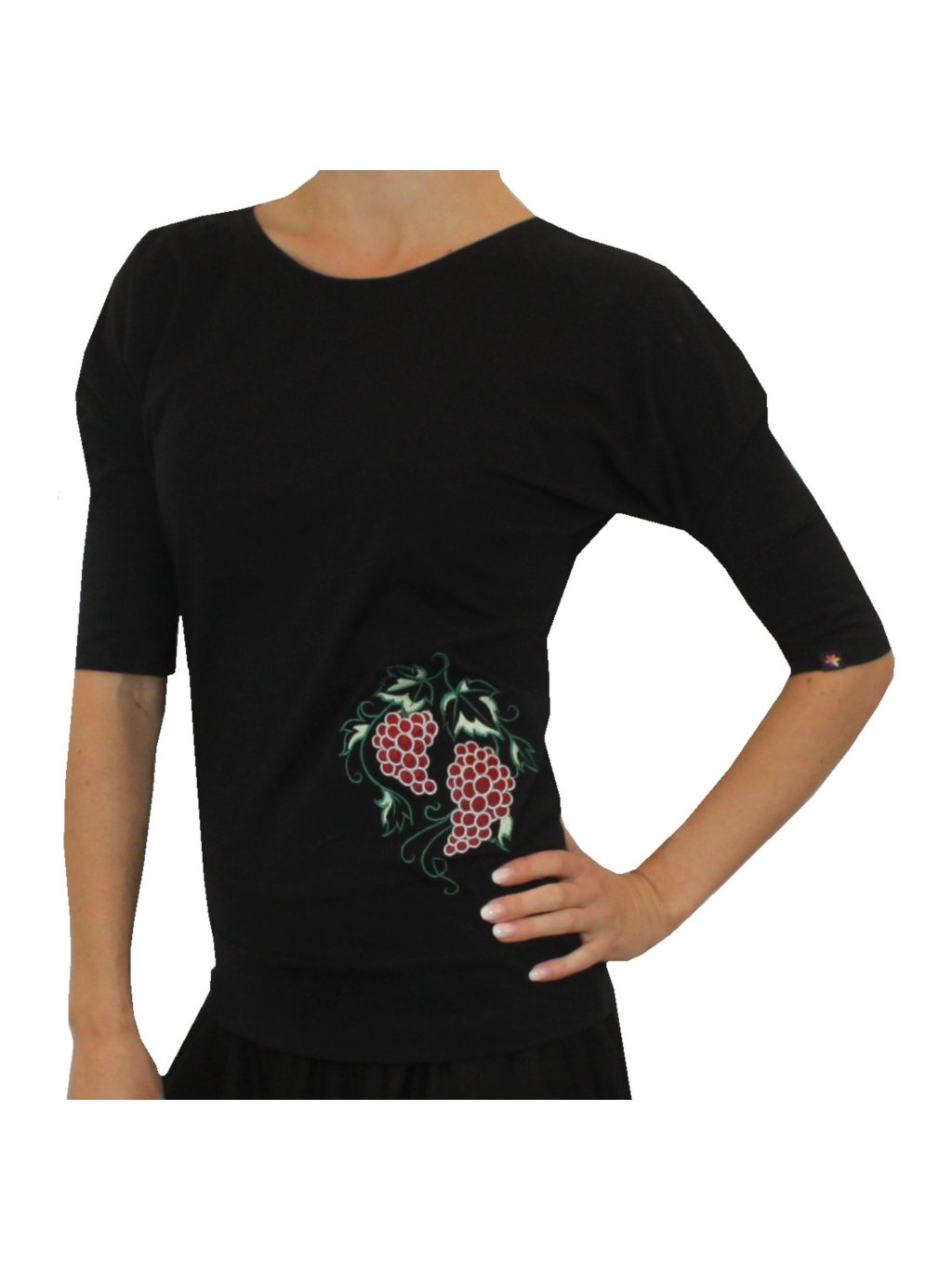 Černé bavlněné tričko s 3/4 rukávky, hrozny