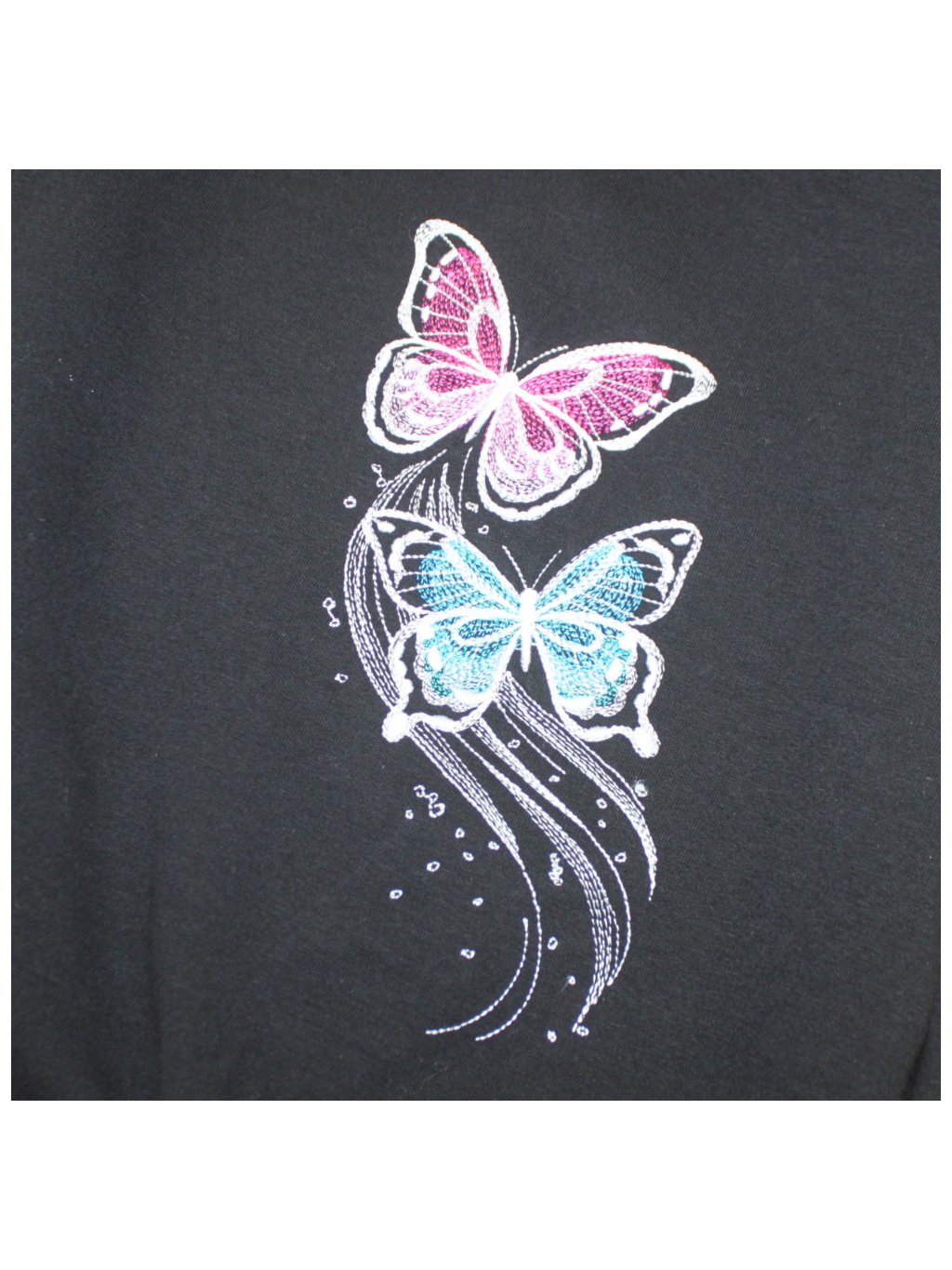 Na boku je výšivka - vícebarevná.