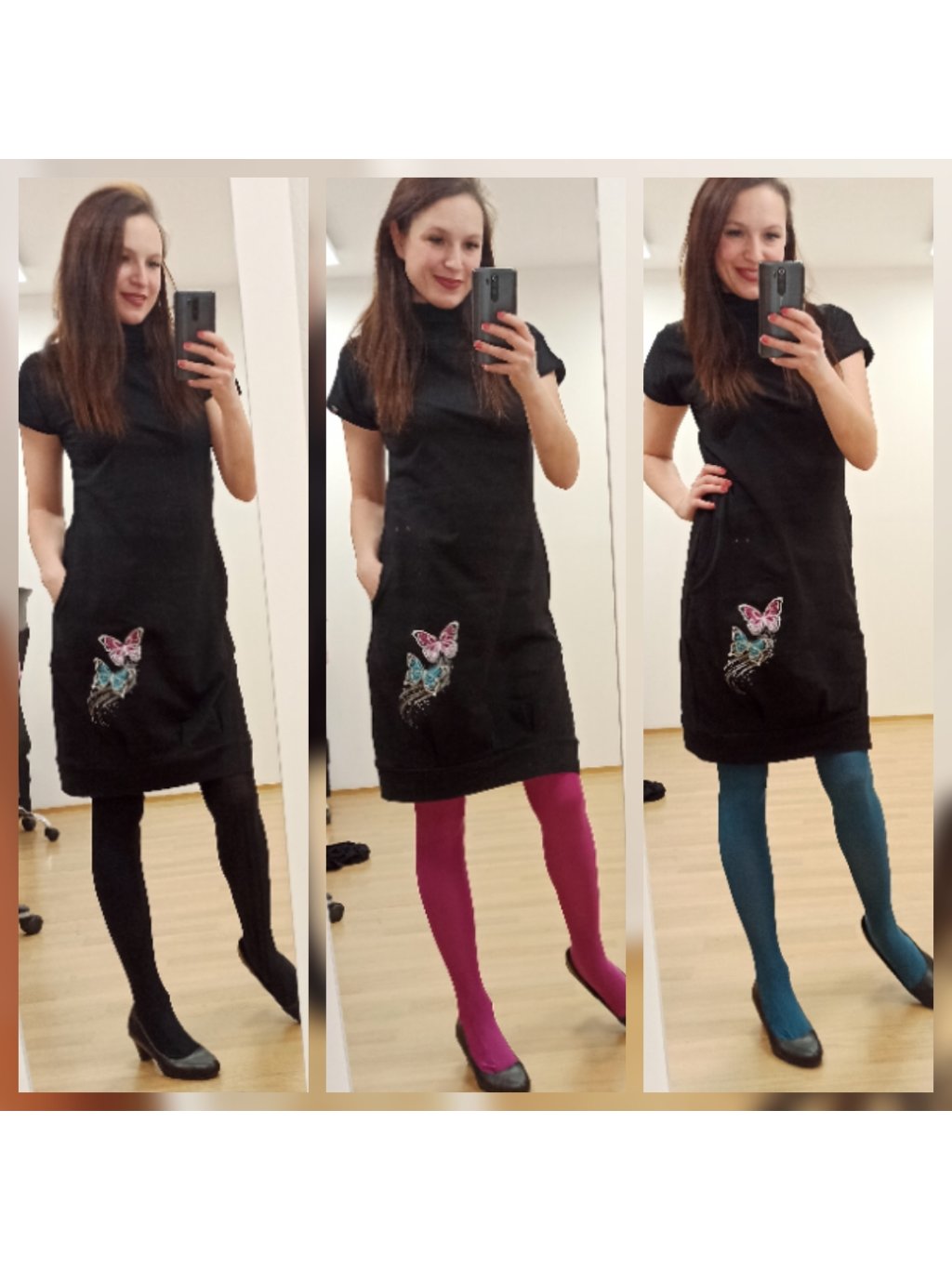 Šaty se hodí k punčocháčům a s tričkem na zimu/ jaro. V teplějších dnech je unosíte na tělo.
