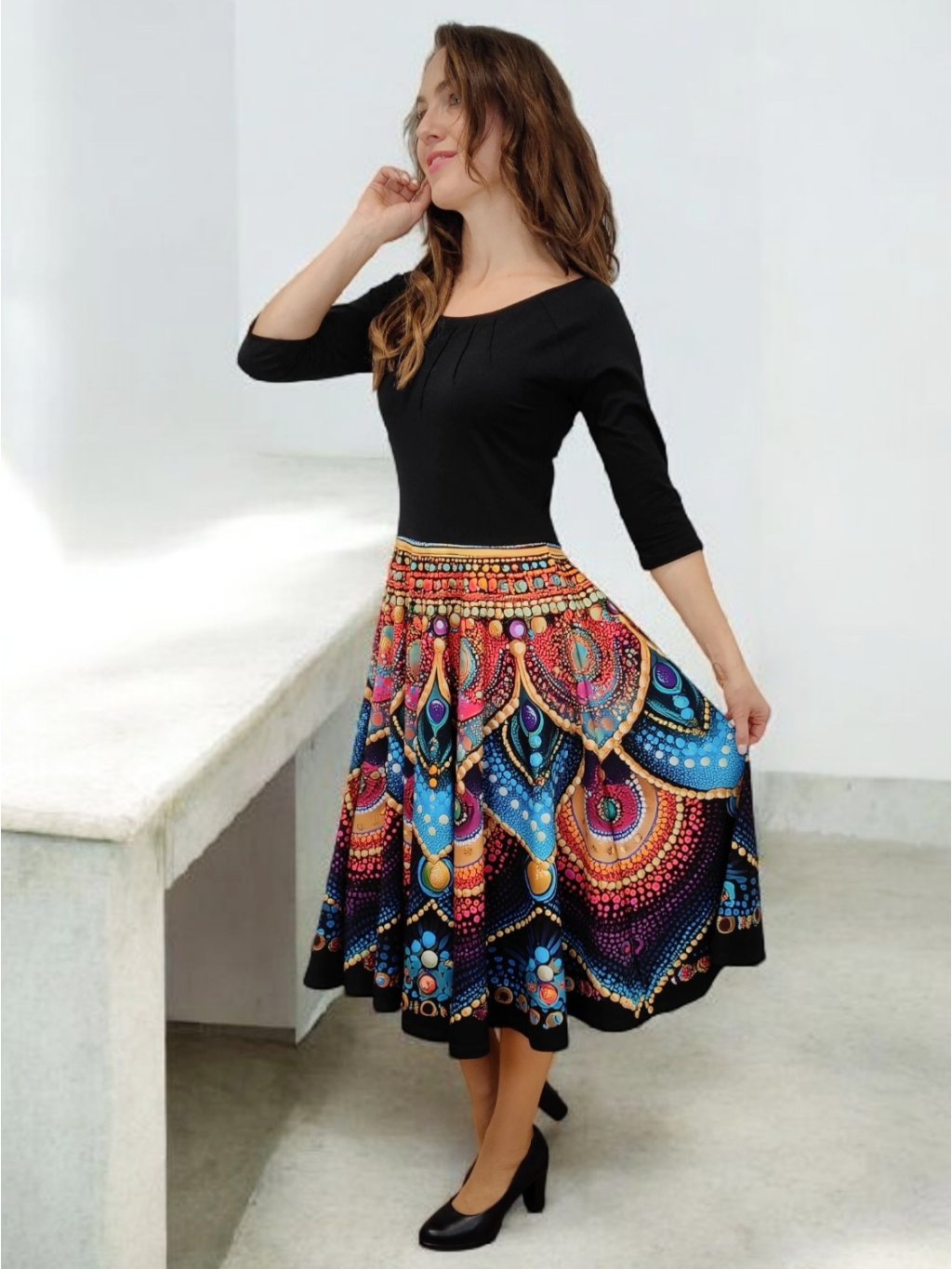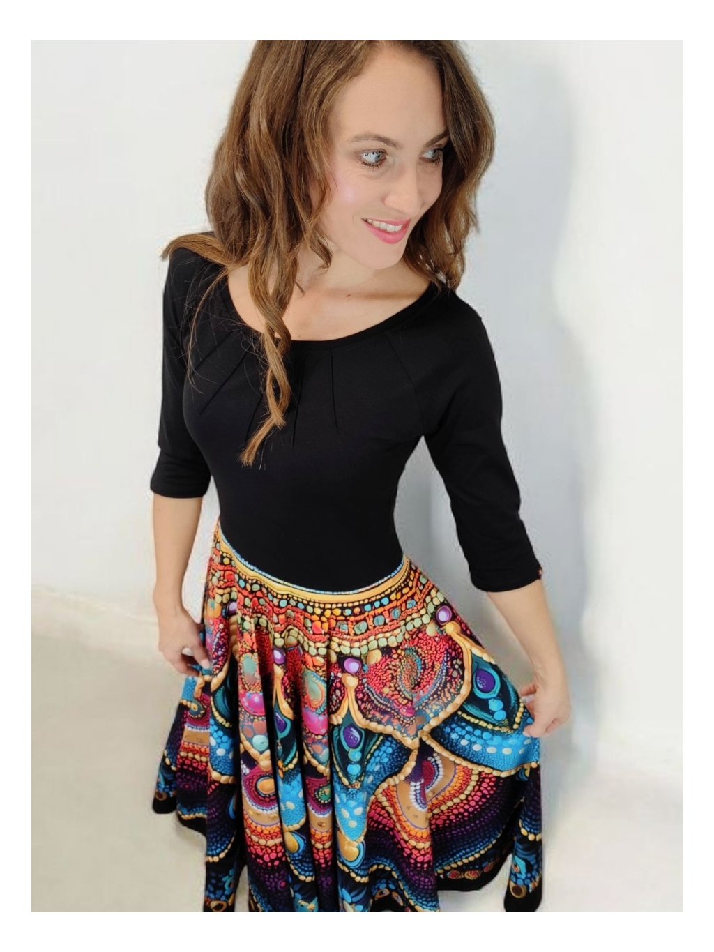 Šaty MAARTY – Orient vás okouzlí svou elegantní černí doplněnou jemným orientálním vzorem. Jsou ideální pro ženy, které chtějí spojit pohodlí a šmrnc. Lze je nosit do práce, do města i na posezení s přáteli.