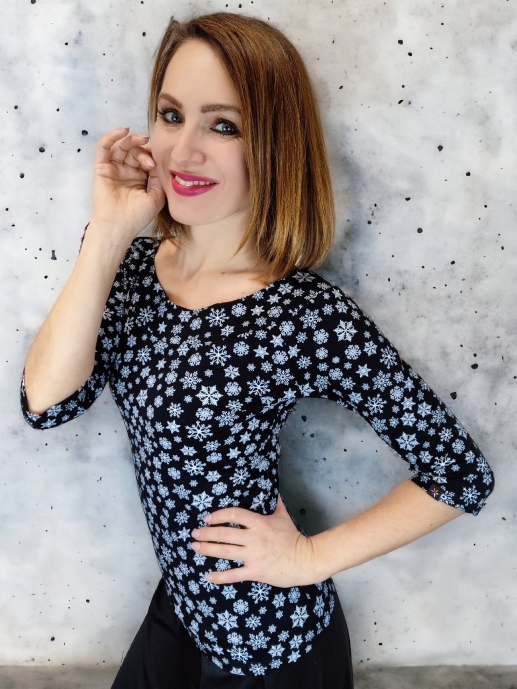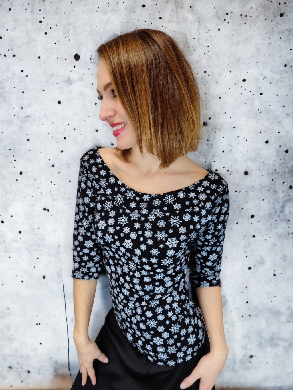 Černé dámské tričko LELA, 3/4 rukáv, lodičkový výstřih, sněhové vločky