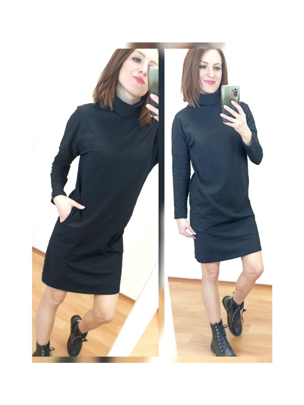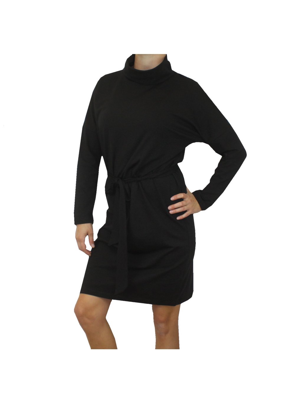Černé šaty volného střihu, rolák, dlouhé rukávy