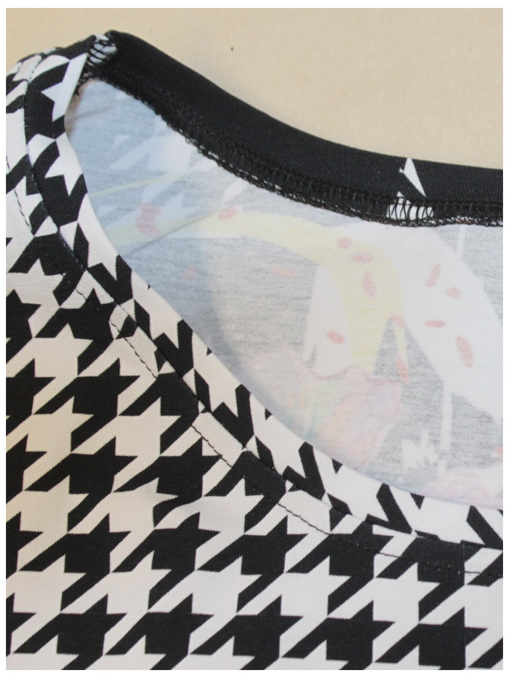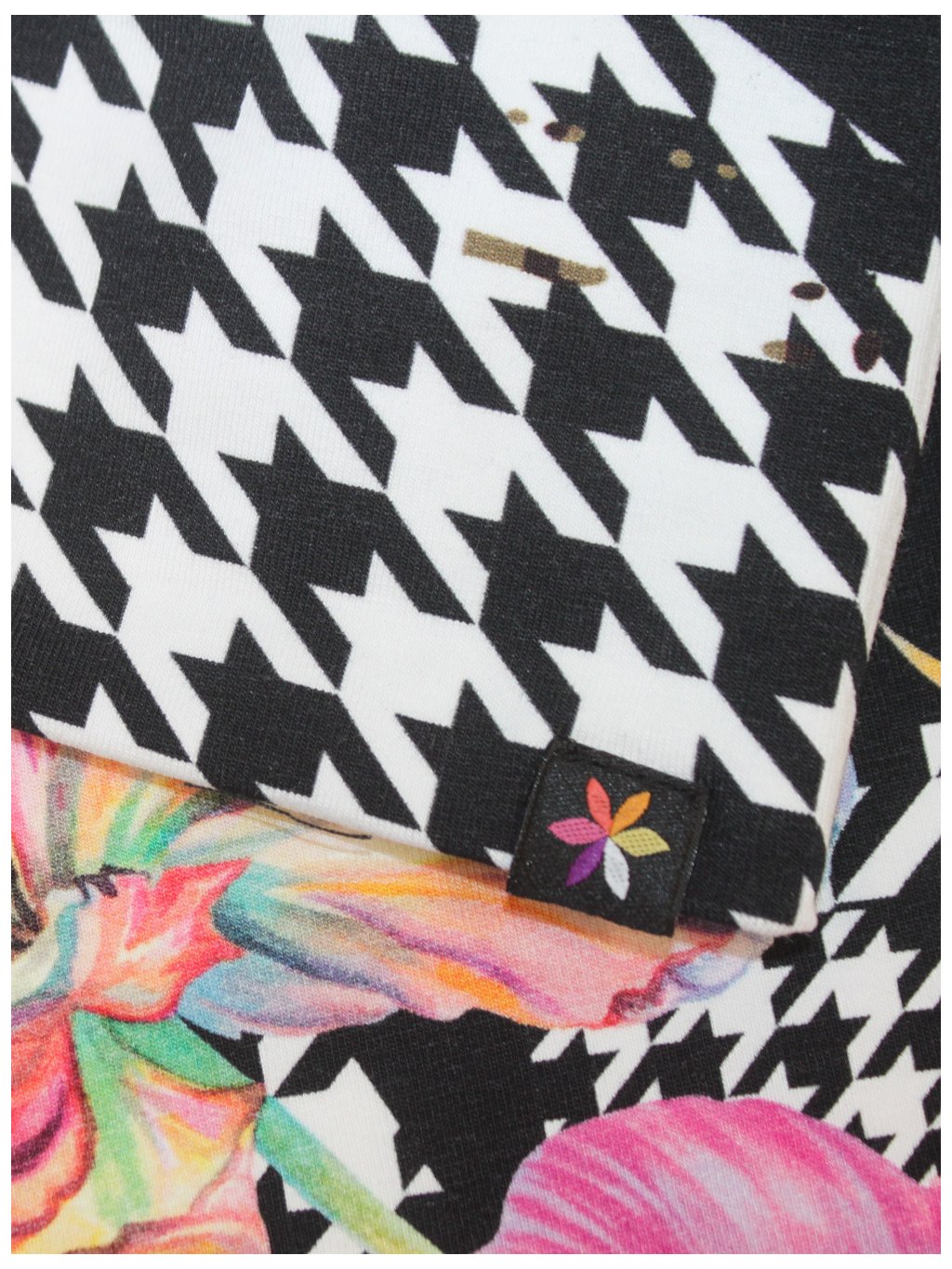 Černo-bílé dámské šaty s barevnými květy ze středně silného bavlněného úpletu se hodí především na jaro a léto.